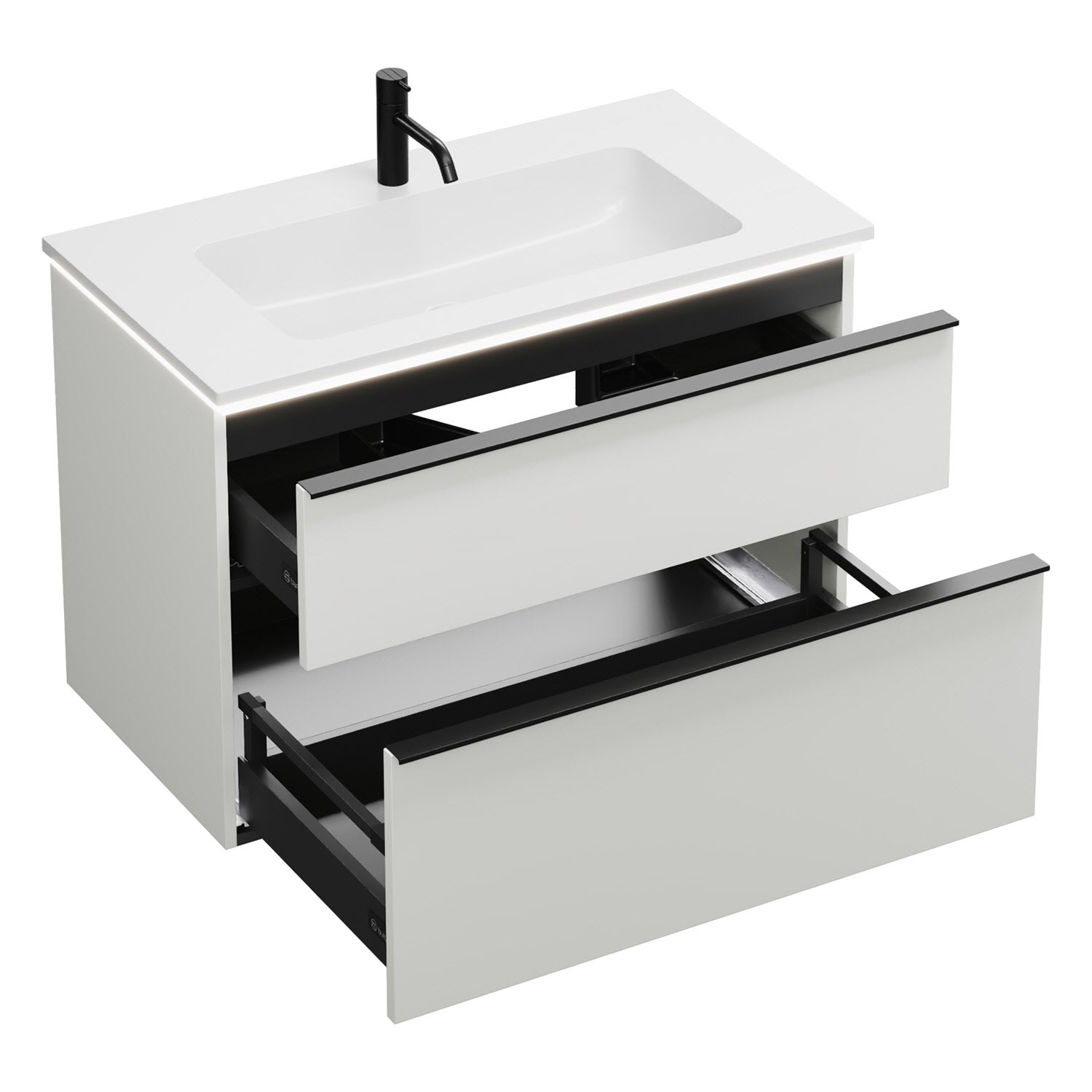 burgbad Eqio Waschtischkombination mit Mineralguss-Waschtisch und LED-Beleuchtung, 92 cm, mit Griffleiste G0252