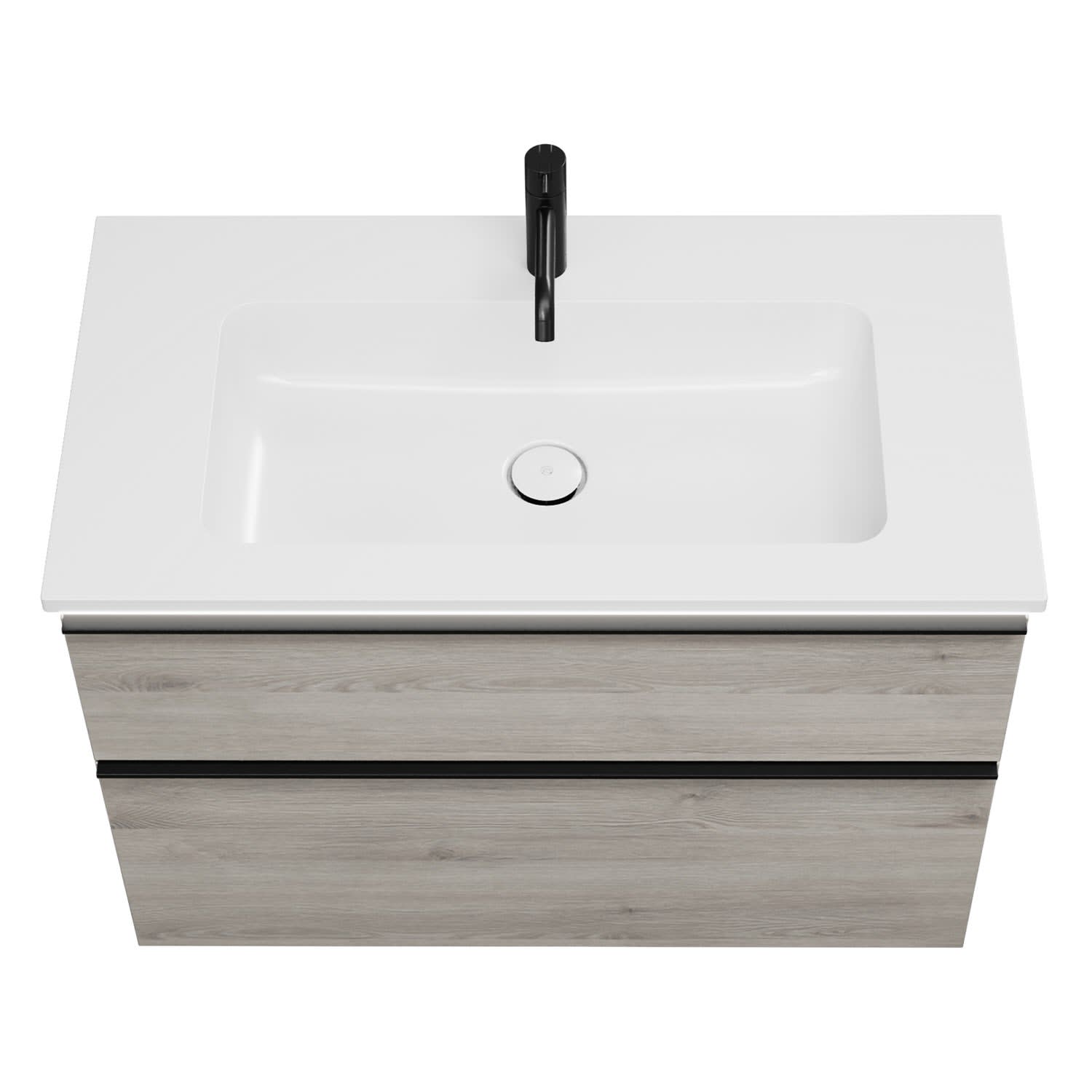 burgbad Eqio Waschtischkombination mit Mineralguss-Waschtisch und LED-Beleuchtung, 92 cm, mit Griffleiste G0252