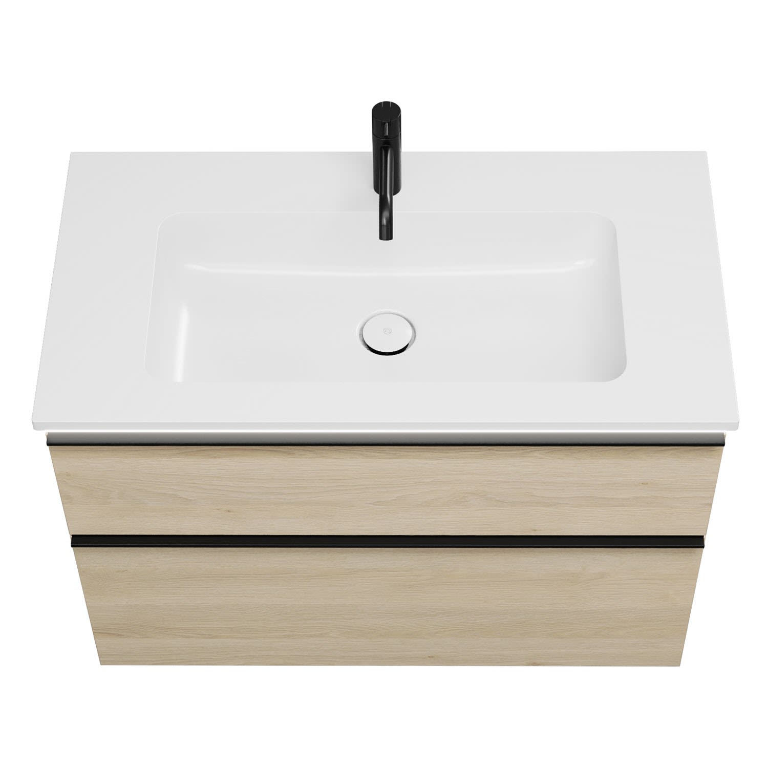 burgbad Eqio Waschtischkombination mit Mineralguss-Waschtisch und LED-Beleuchtung, 92 cm, mit Griffleiste G0252
