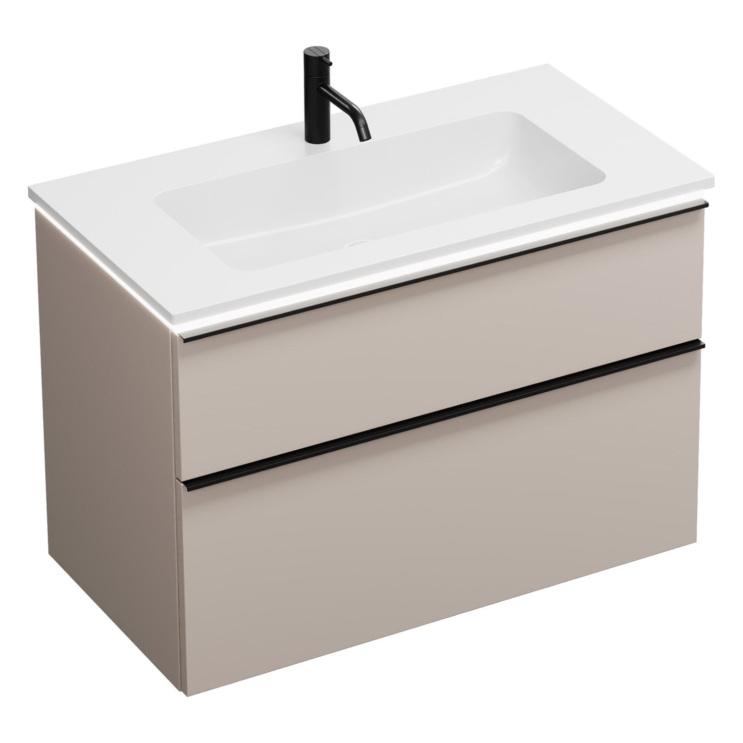 burgbad Eqio Waschtischkombination mit Mineralguss-Waschtisch und LED-Beleuchtung, 92 cm, mit Griffleiste G0252