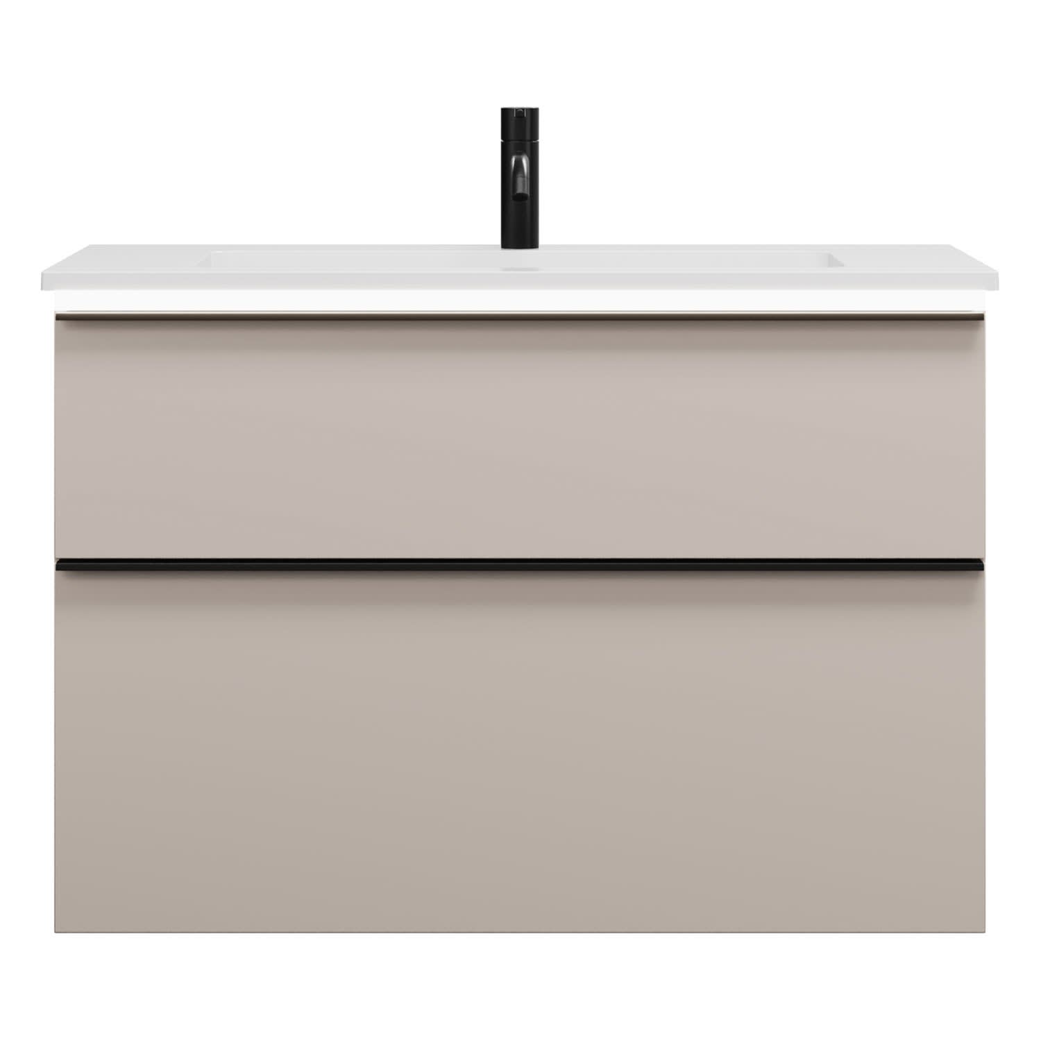 - 1 Schublade oben, 35 cm tief, mit Siphonausschnitt und Inneneinteilung