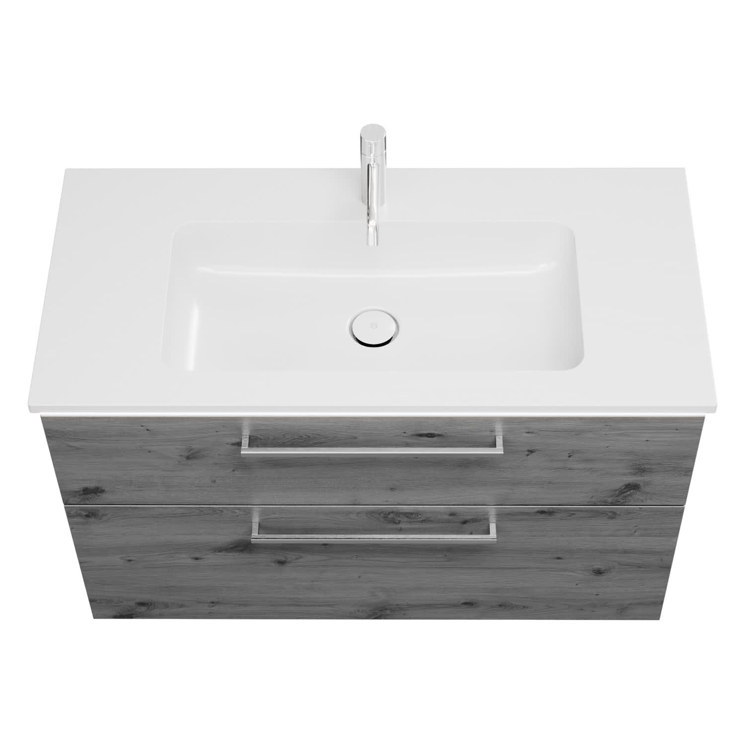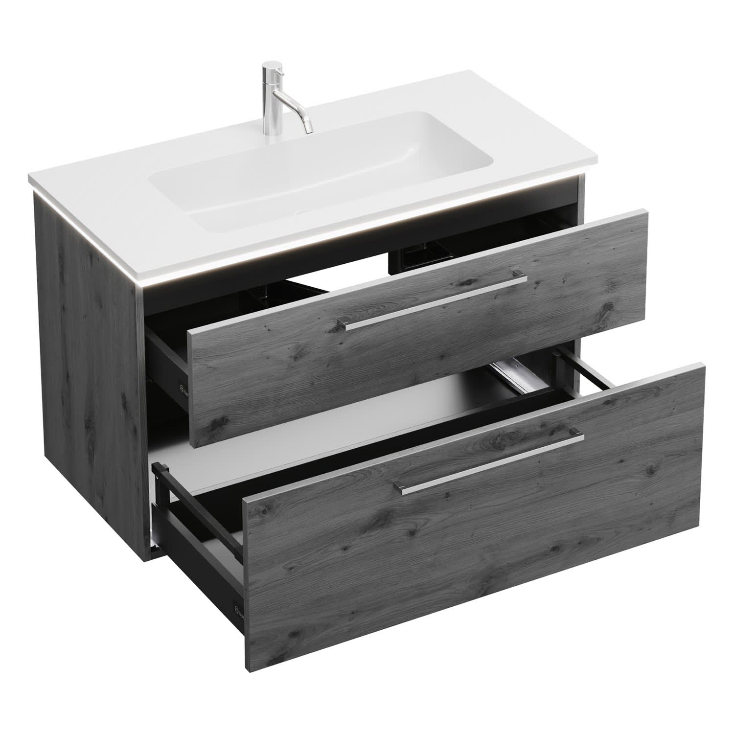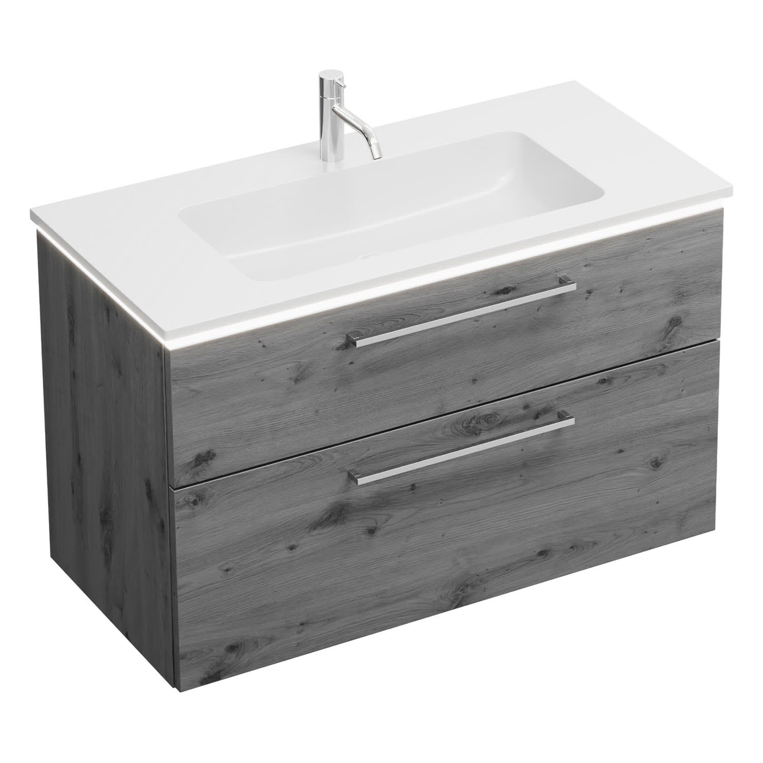 burgbad Eqio Waschtischkombination mit Mineralguss-Waschtisch und LED-Beleuchtung, 102 cm, mit Stangengriff P95