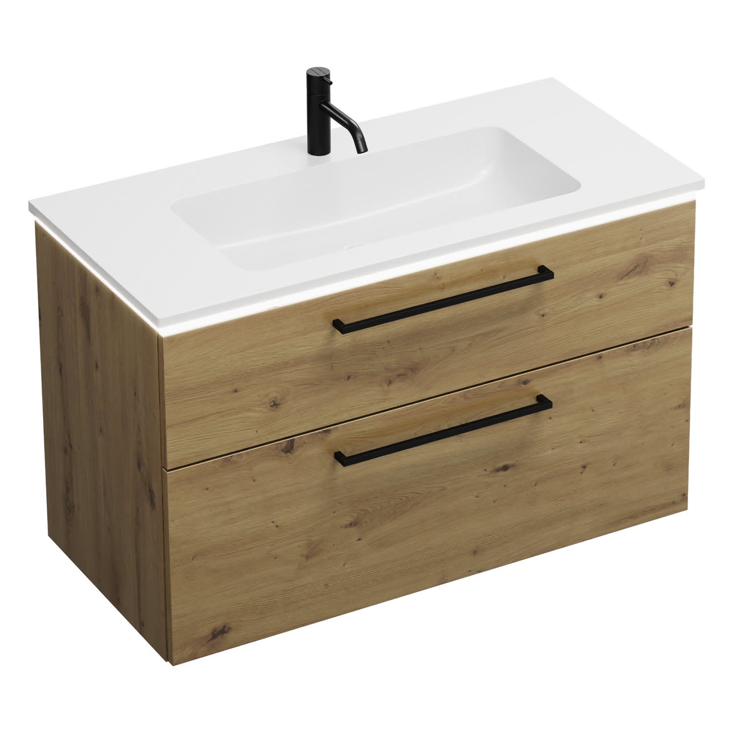 burgbad Eqio Waschtischkombination mit Mineralguss-Waschtisch und LED-Beleuchtung, 102 cm, mit Stangengriff G0234