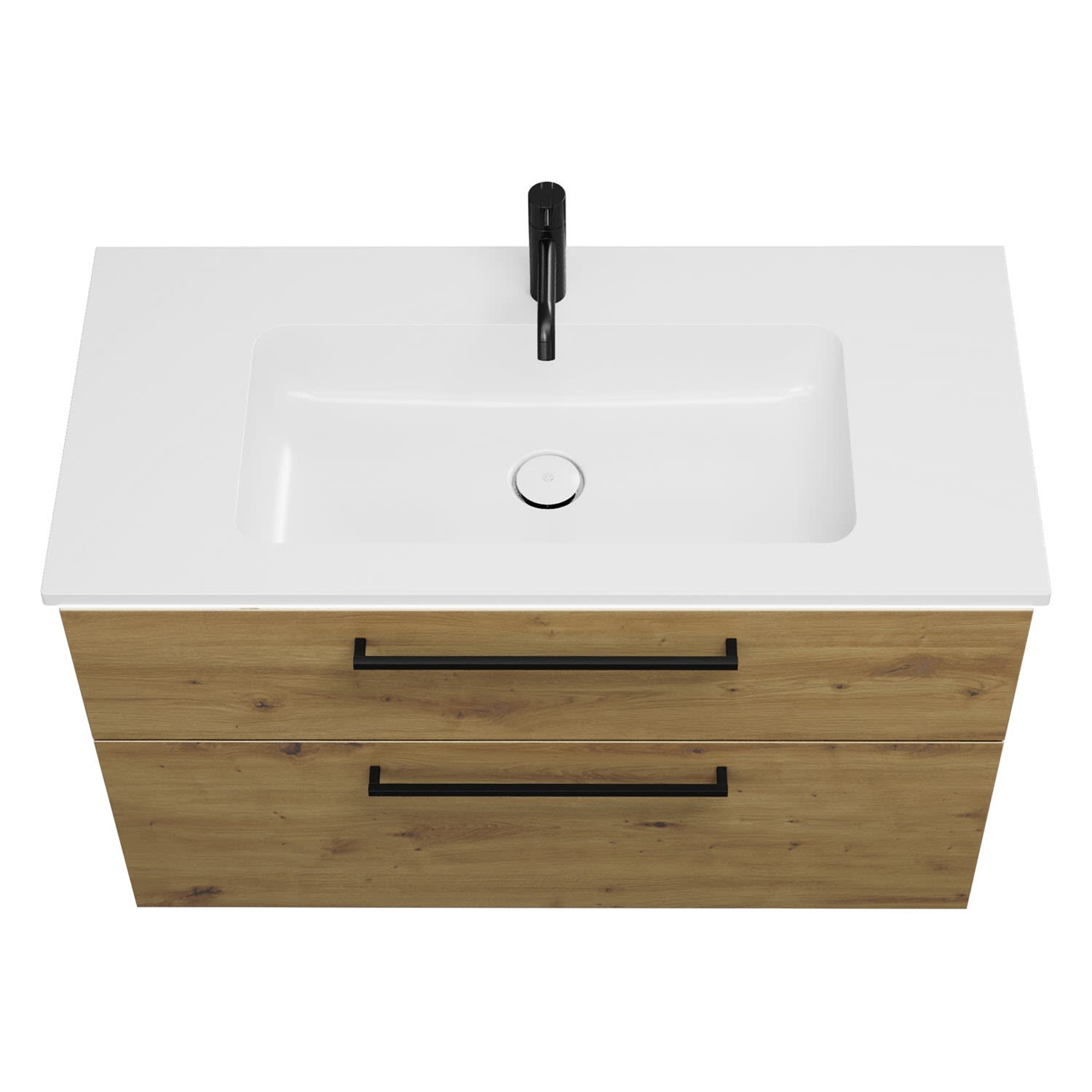 - 1 Schublade oben, 35 cm tief, mit Siphonausschnitt und Inneneinteilung