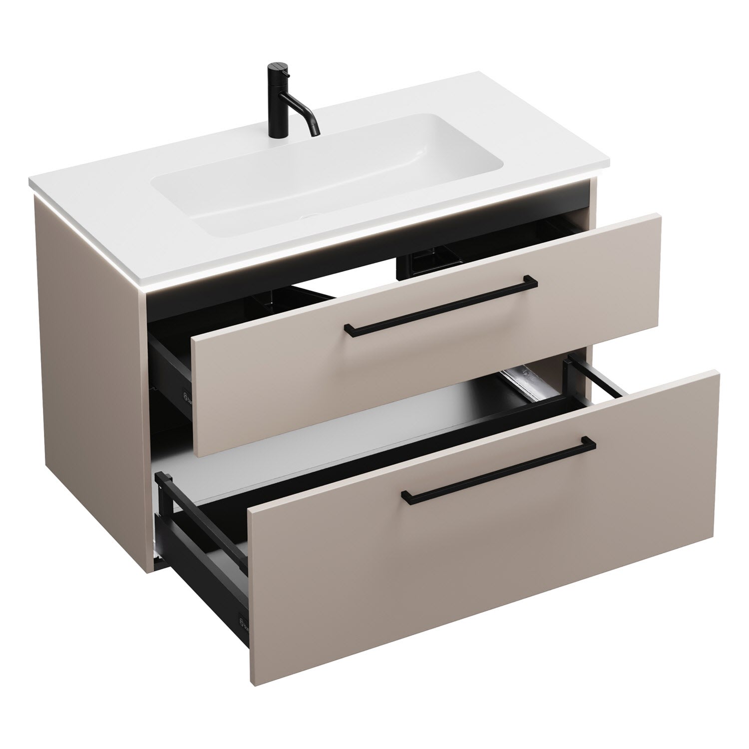 burgbad Eqio Waschtischkombination mit Mineralguss-Waschtisch und LED-Beleuchtung, 102 cm, mit Stangengriff G0234