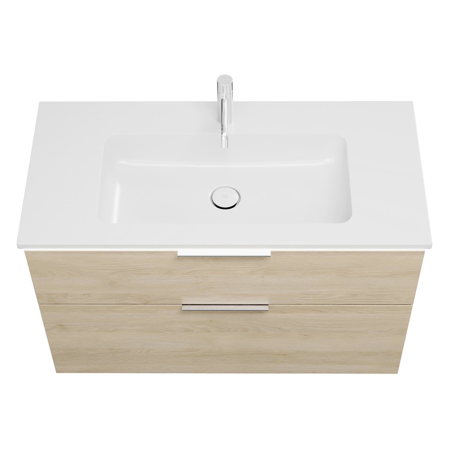 burgbad Eqio Waschtischkombination mit Mineralguss-Waschtisch und LED-Beleuchtung, 102 cm, mit Griff G0146