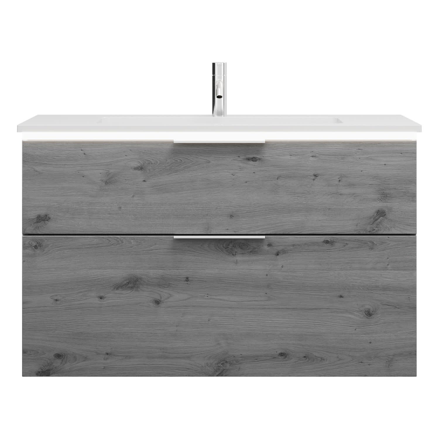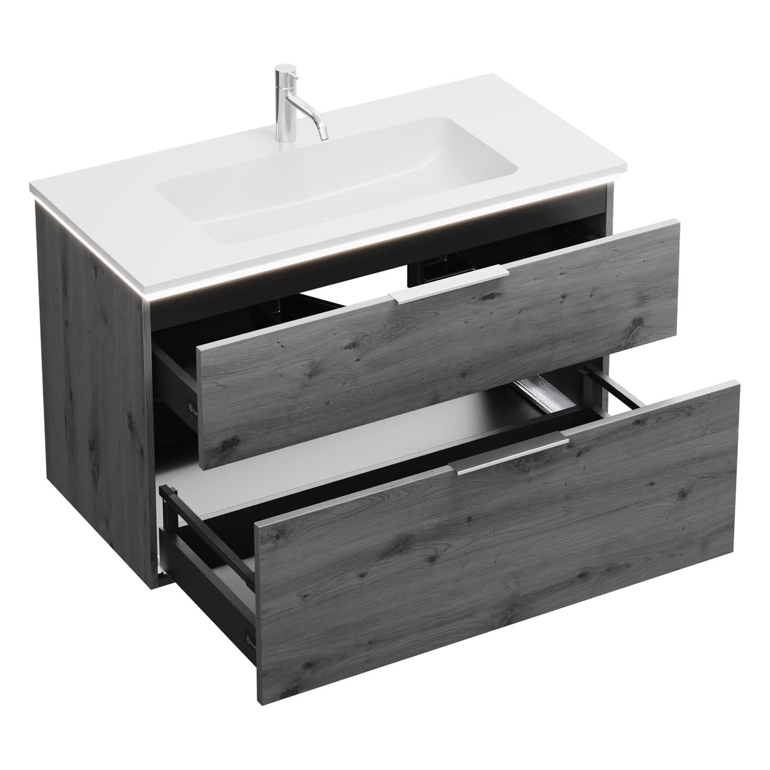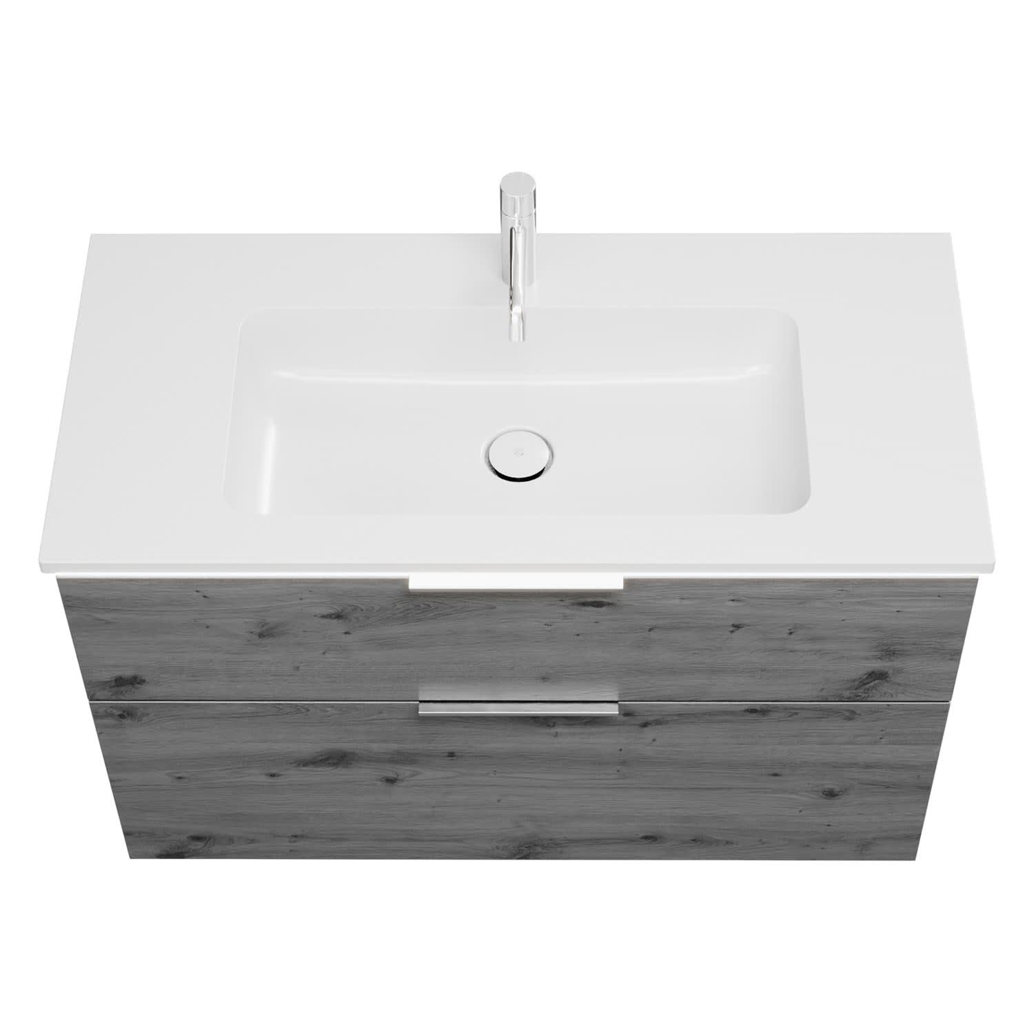 burgbad Eqio Waschtischkombination mit Mineralguss-Waschtisch und LED-Beleuchtung, 102 cm, mit Griff G0146