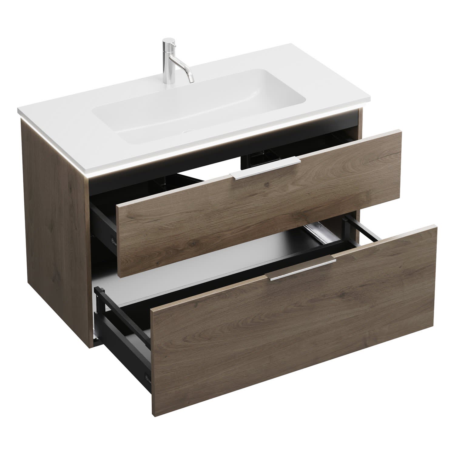 burgbad Eqio Waschtischkombination mit Mineralguss-Waschtisch und LED-Beleuchtung, 102 cm, mit Griff G0146