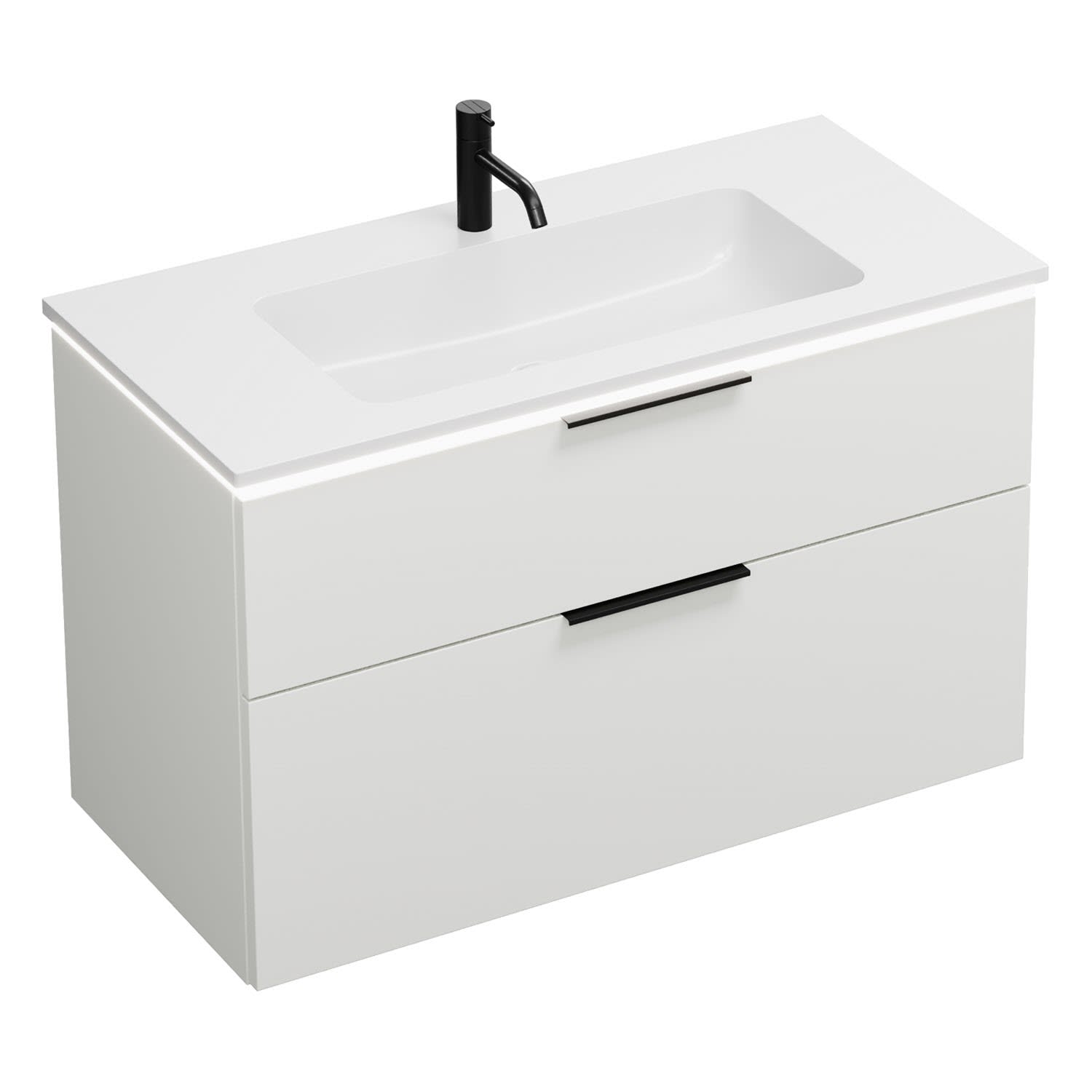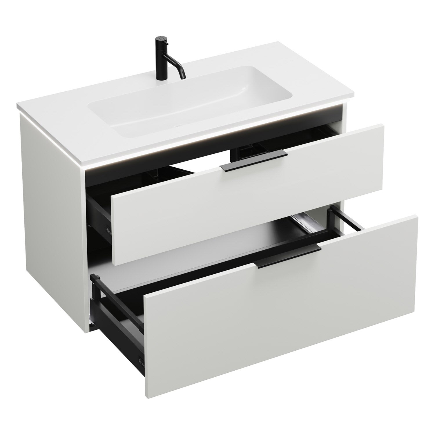burgbad Eqio Waschtischkombination mit Mineralguss-Waschtisch und LED-Beleuchtung, 102 cm, mit Griff G0200