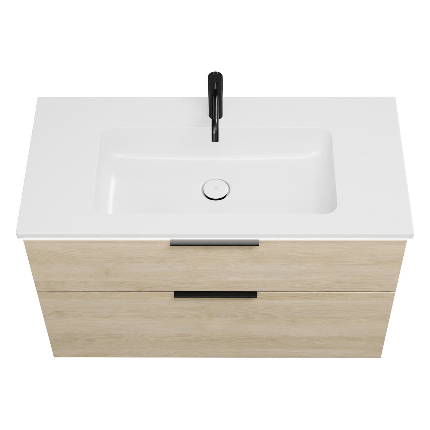 - 1 Schublade oben, 35 cm tief, mit Siphonausschnitt und Inneneinteilung
