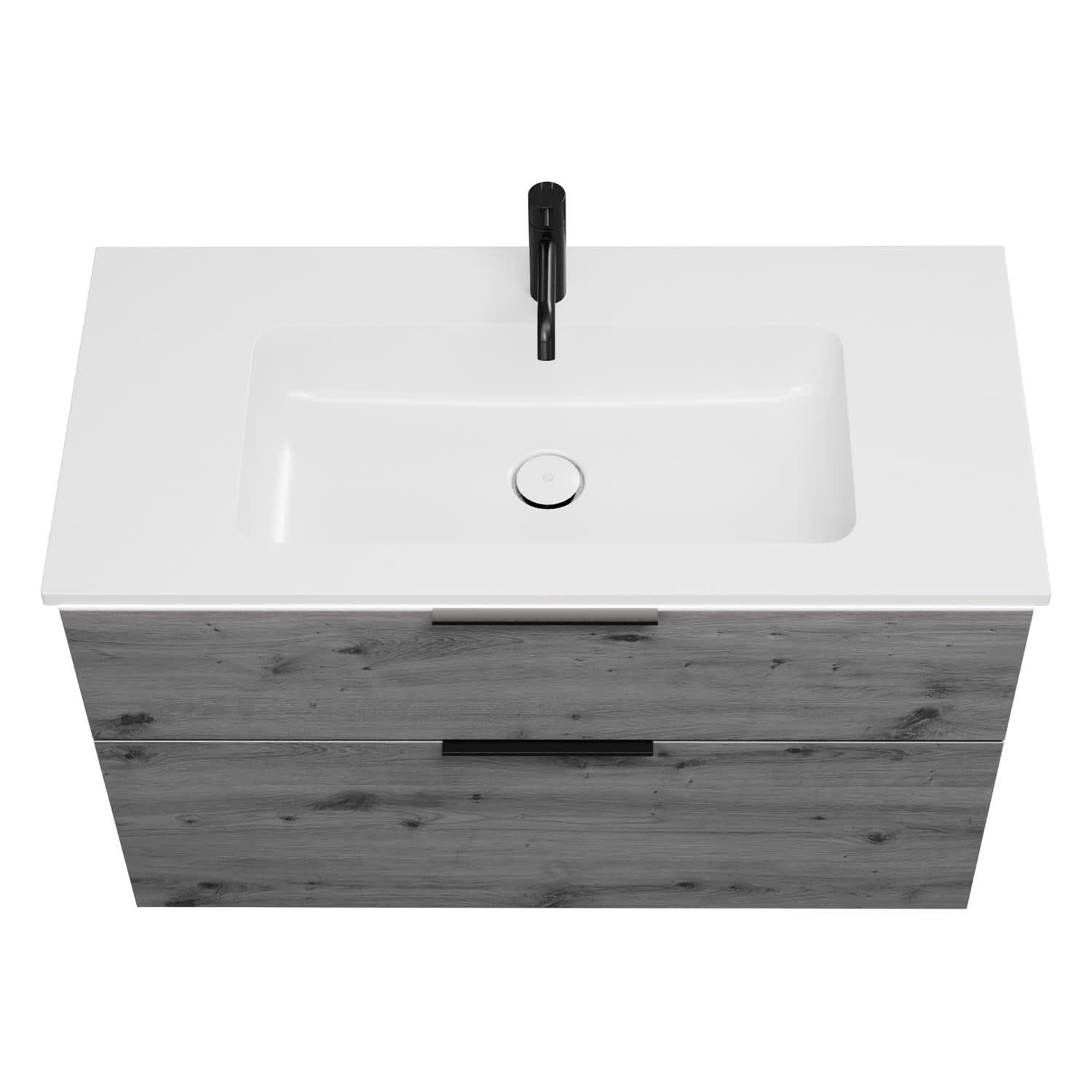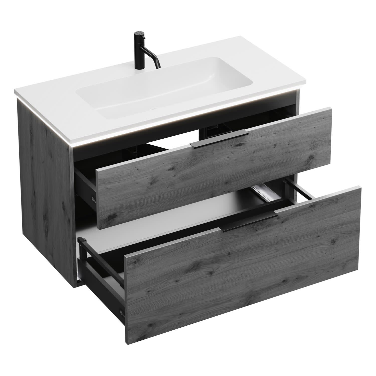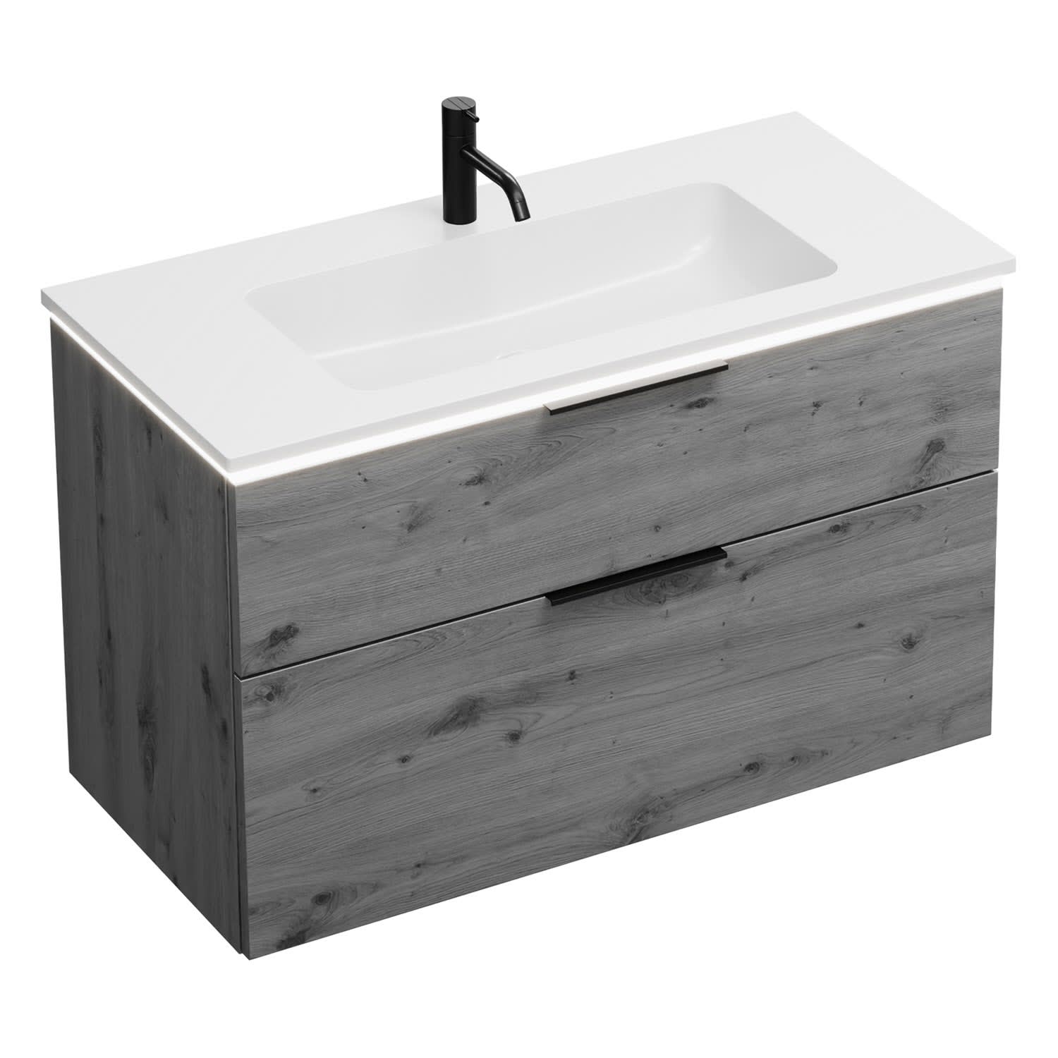 burgbad Eqio Waschtischkombination mit Mineralguss-Waschtisch und LED-Beleuchtung, 102 cm, mit Griff G0200