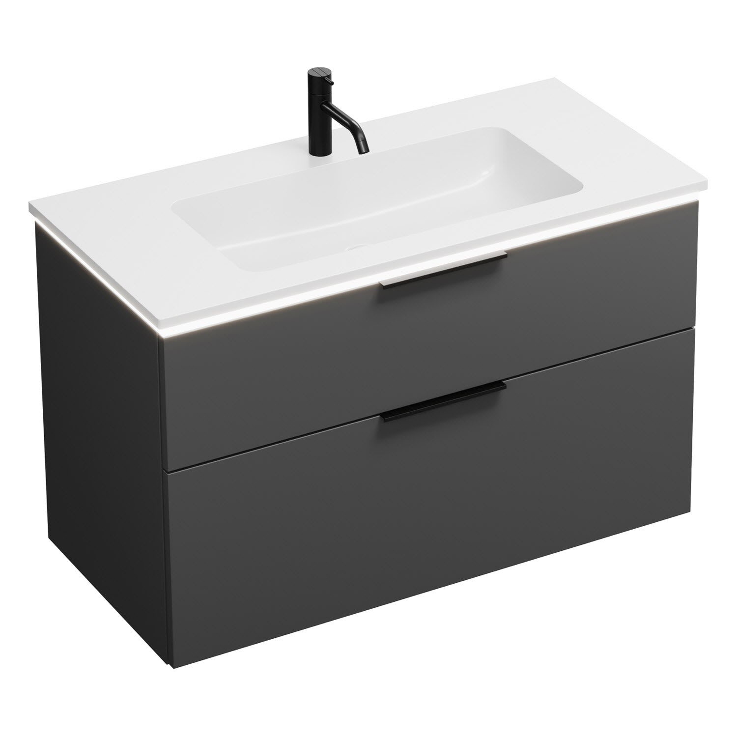 burgbad Eqio Waschtischkombination mit Mineralguss-Waschtisch und LED-Beleuchtung, 102 cm, mit Griff G0200