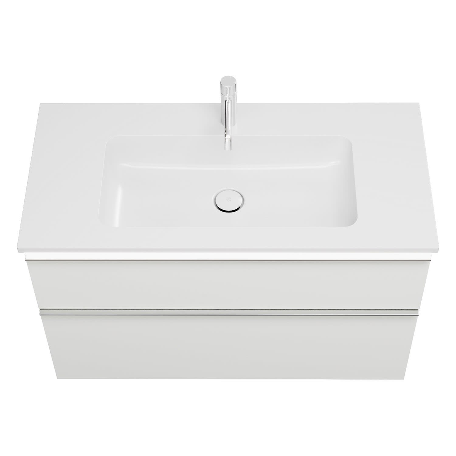 burgbad Eqio Waschtischkombination mit Mineralguss-Waschtisch und LED-Beleuchtung, 102 cm, mit Griffleiste G0251