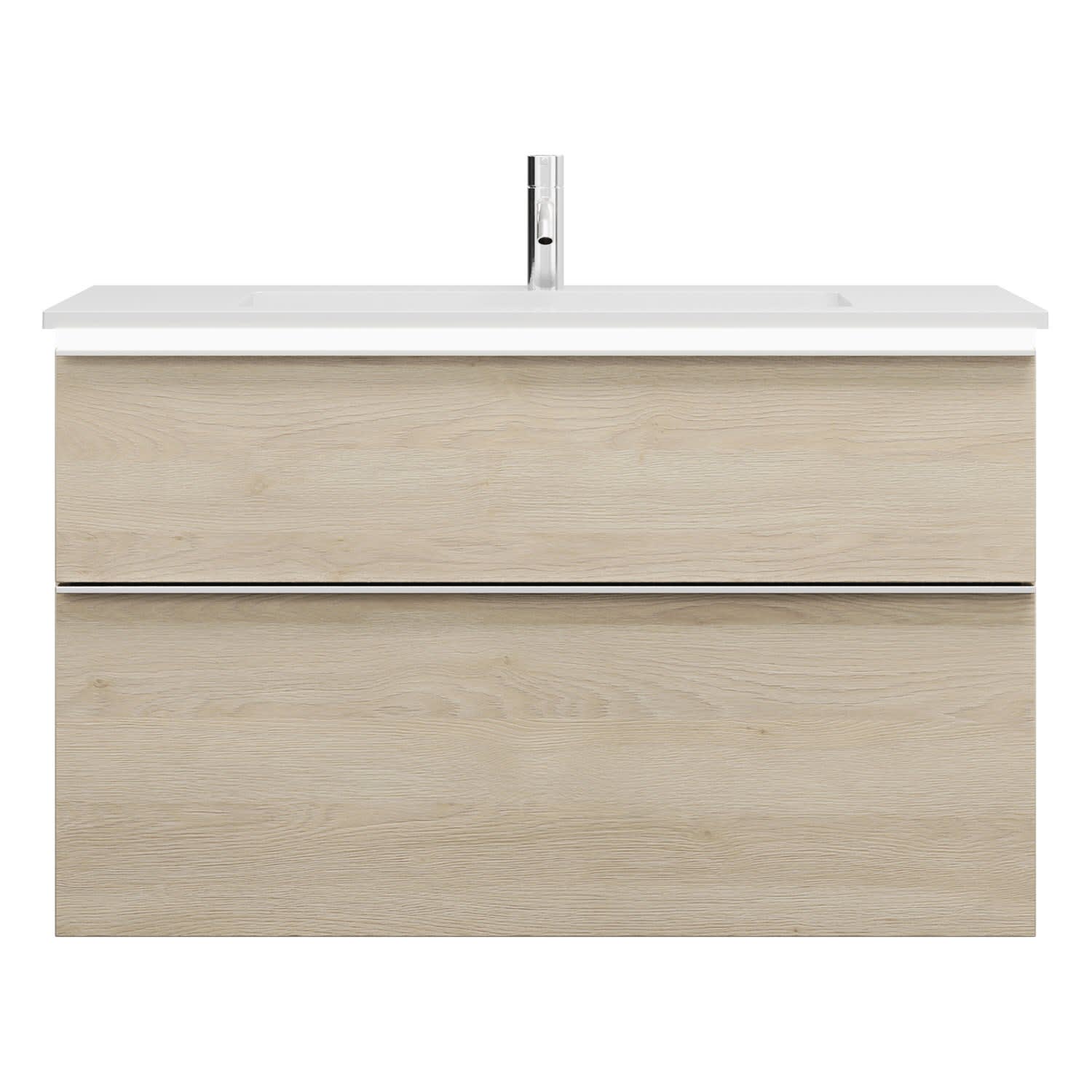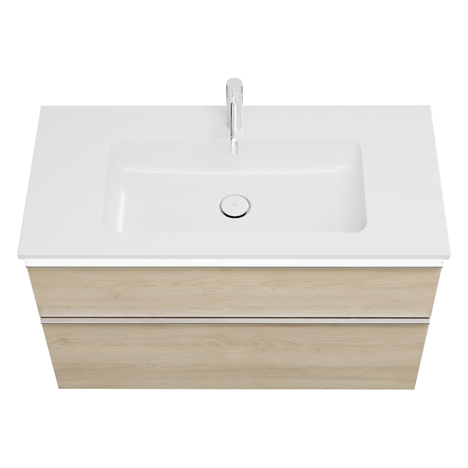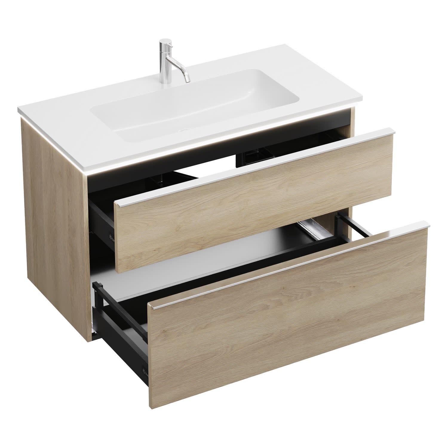 burgbad Eqio Waschtischkombination mit Mineralguss-Waschtisch und LED-Beleuchtung, 102 cm, mit Griffleiste G0251