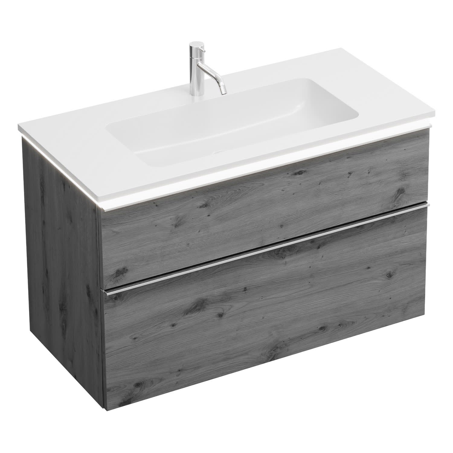 burgbad Eqio Waschtischkombination mit Mineralguss-Waschtisch und LED-Beleuchtung, 102 cm, mit Griffleiste G0251