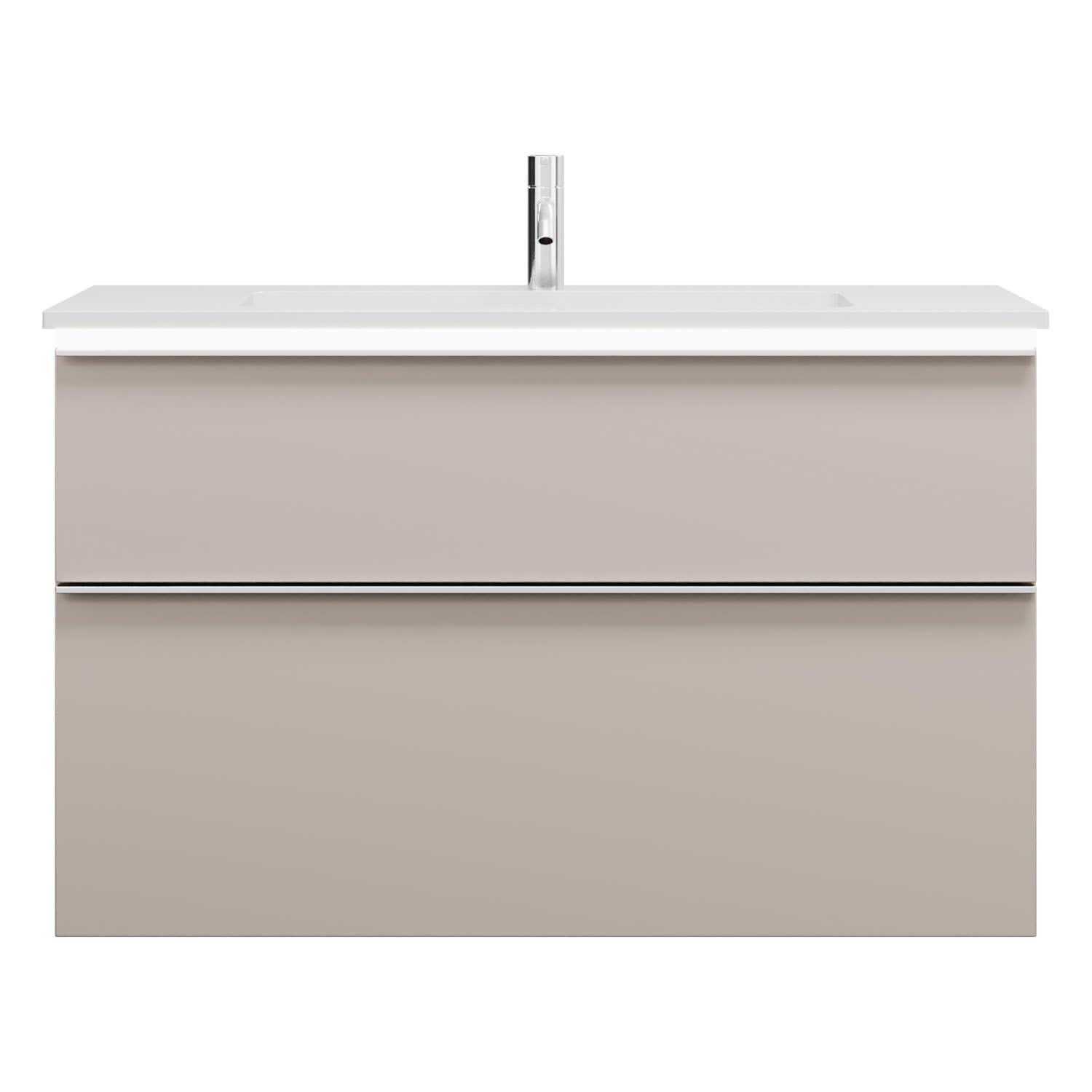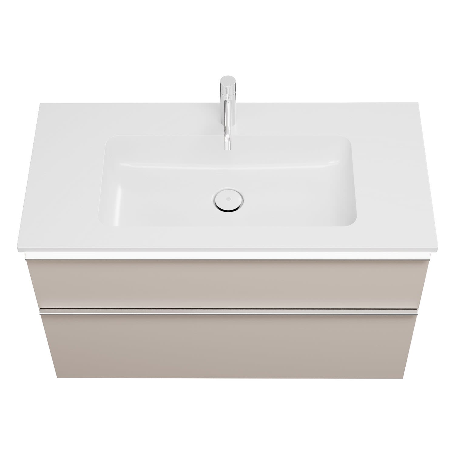 burgbad Eqio Waschtischkombination mit Mineralguss-Waschtisch und LED-Beleuchtung, 102 cm, mit Griffleiste G0251