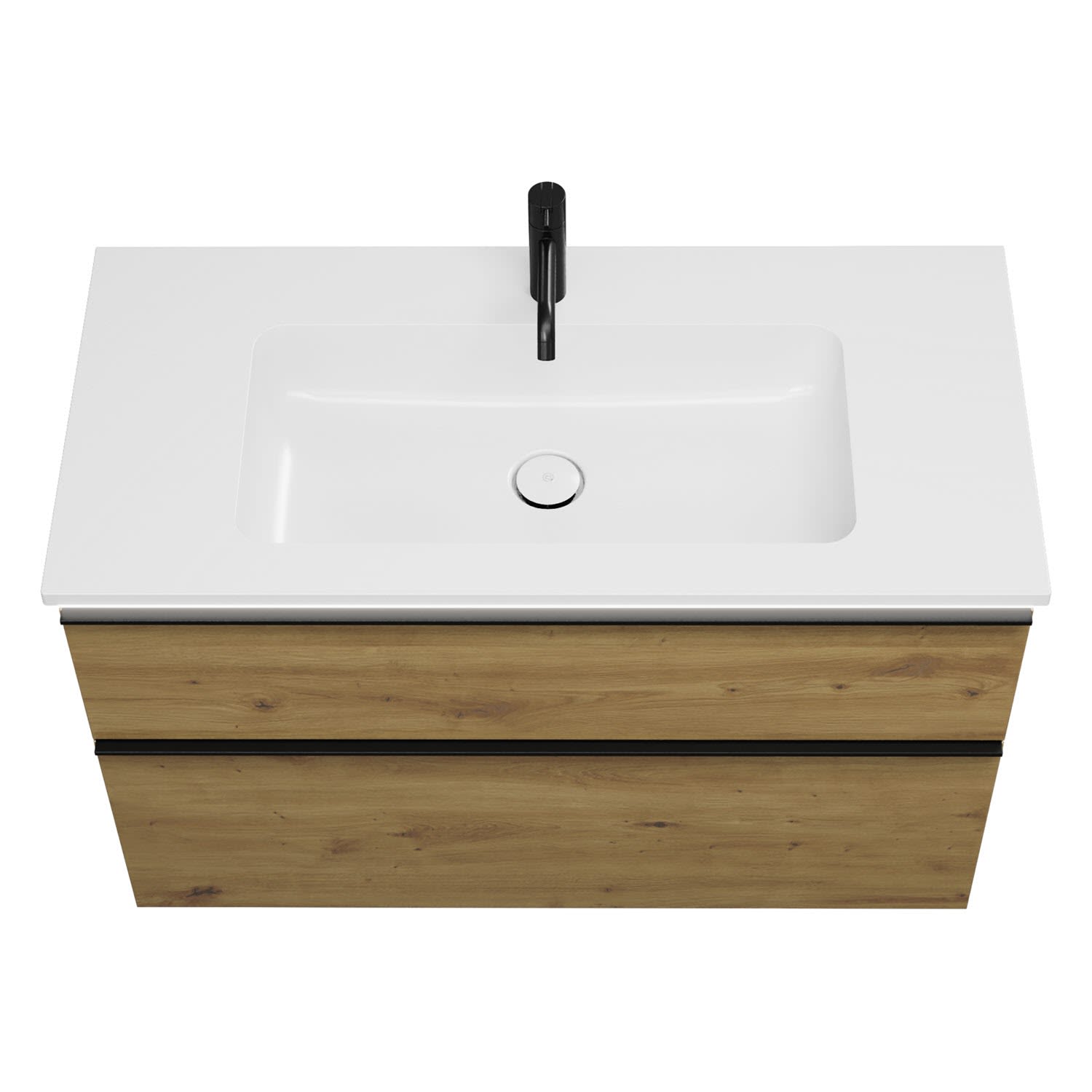 burgbad Eqio Waschtischkombination mit Mineralguss-Waschtisch und LED-Beleuchtung, 102 cm, mit Griffleiste G0252