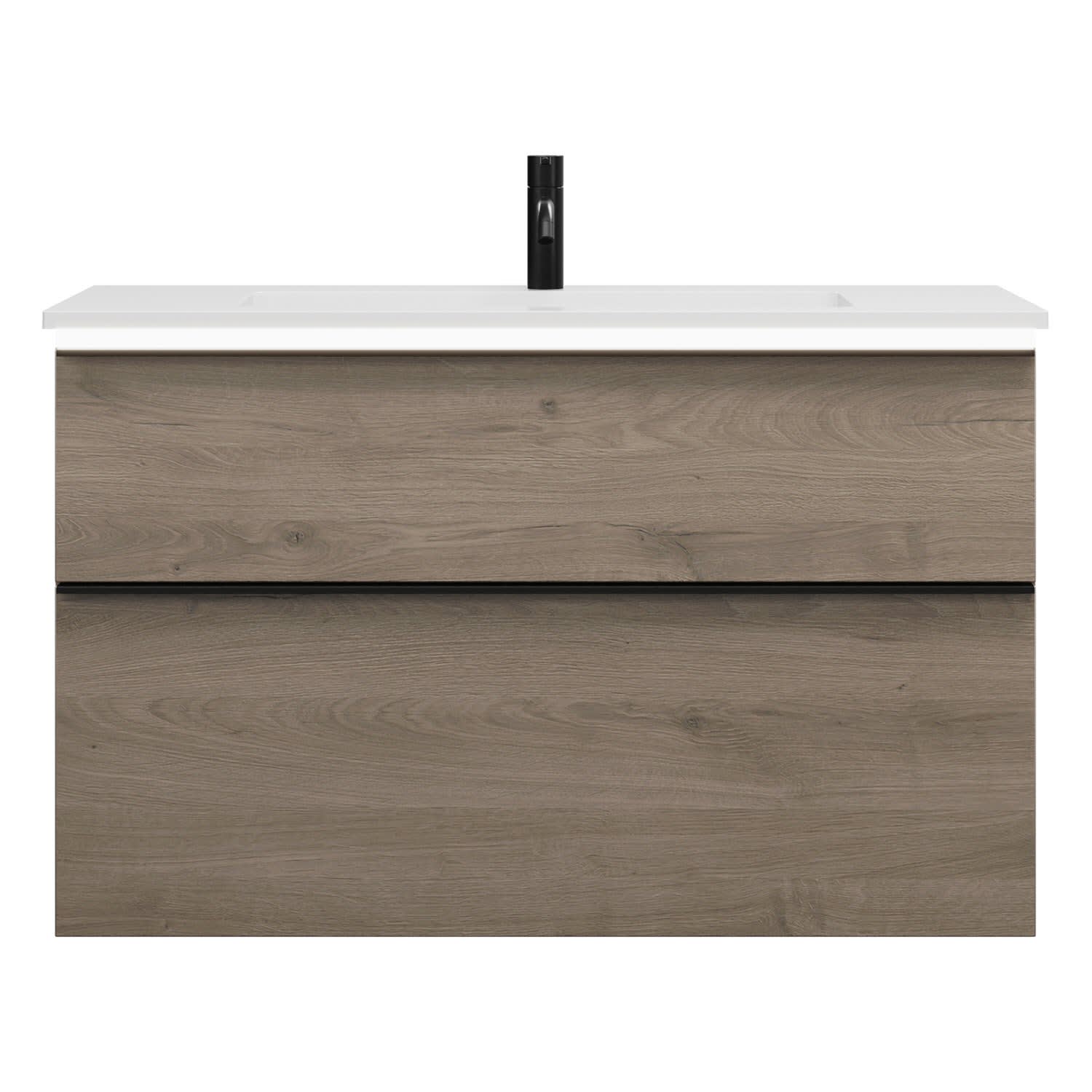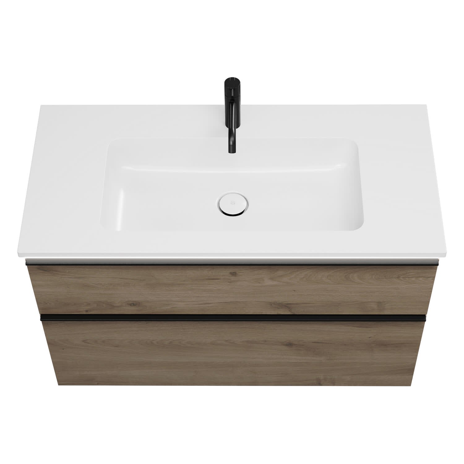 - 1 Schublade oben, 35 cm tief, mit Siphonausschnitt und Inneneinteilung
