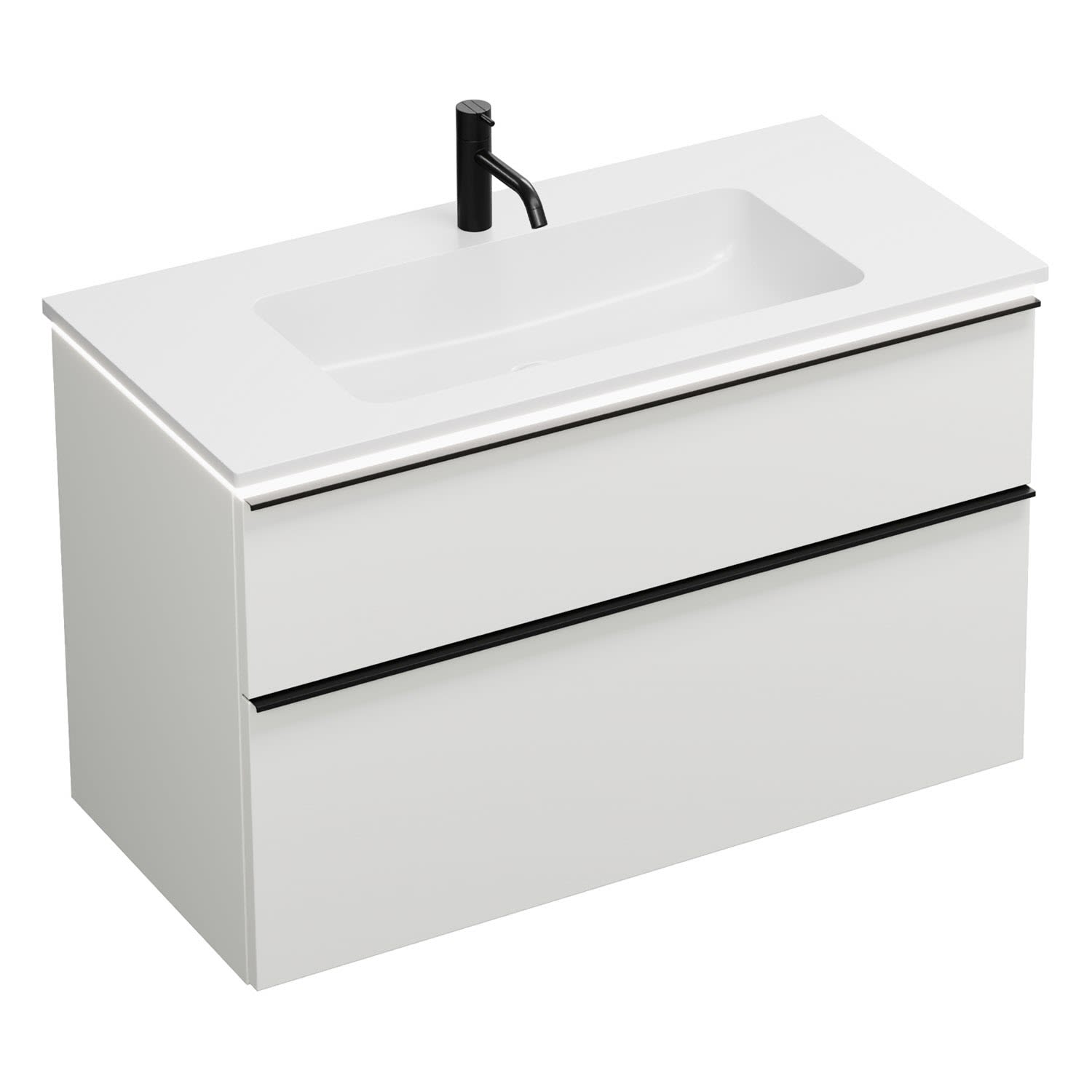 burgbad Eqio Waschtischkombination mit Mineralguss-Waschtisch und LED-Beleuchtung, 102 cm, mit Griffleiste G0252