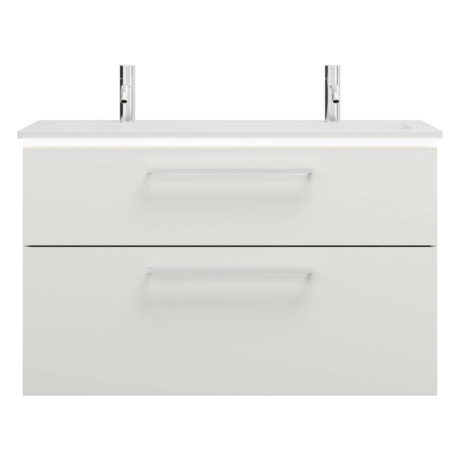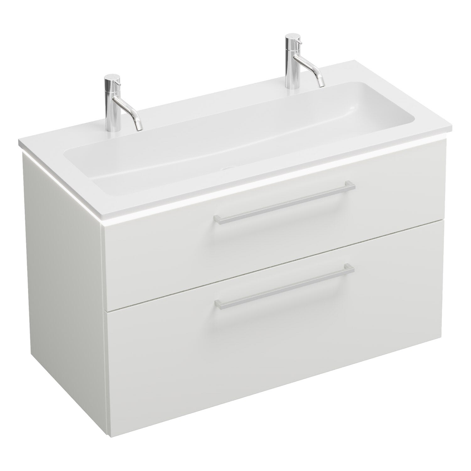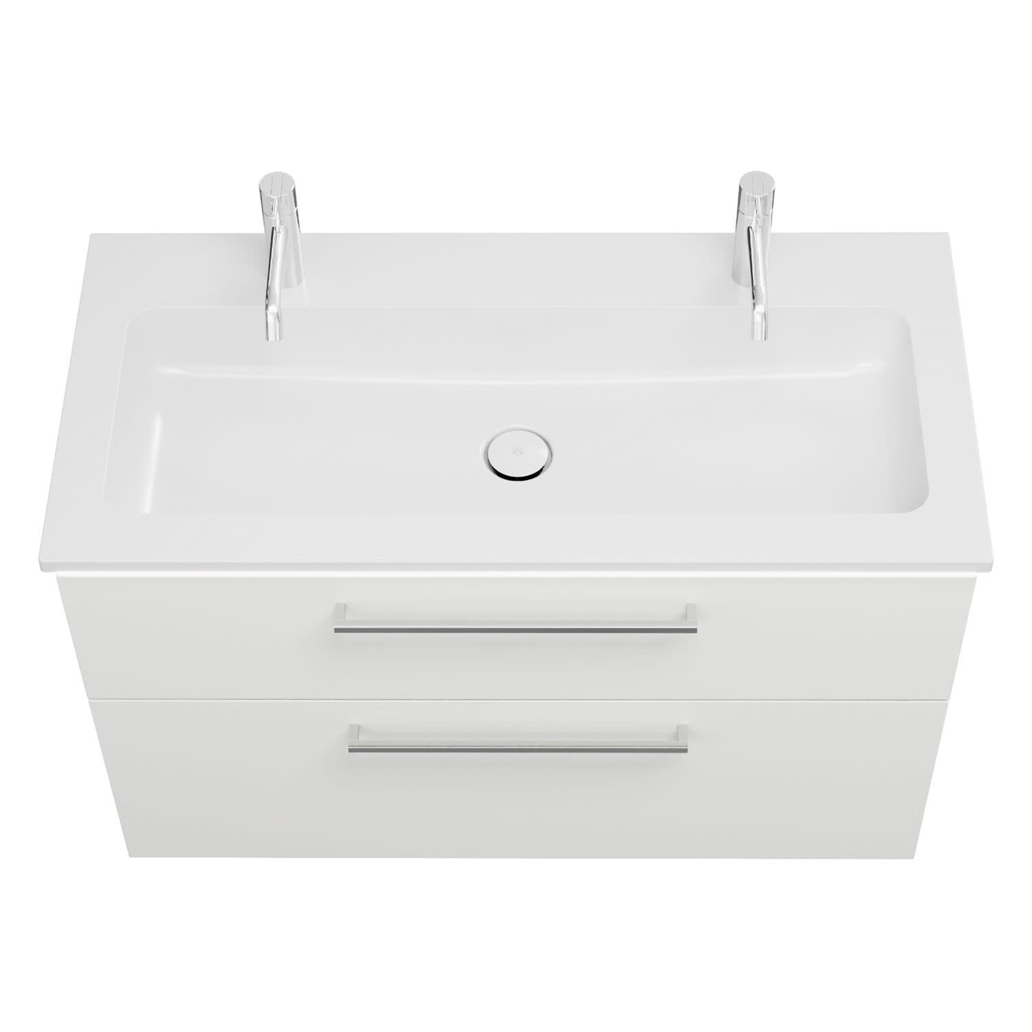 burgbad Eqio Waschtischkombination mit Mineralguss-Waschtisch und LED-Beleuchtung, 102 cm, mit Stangengriff P95