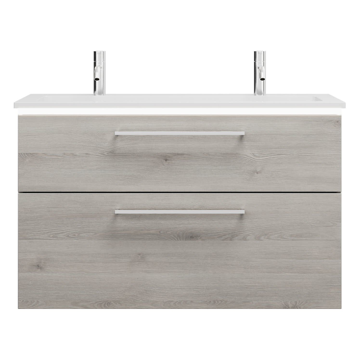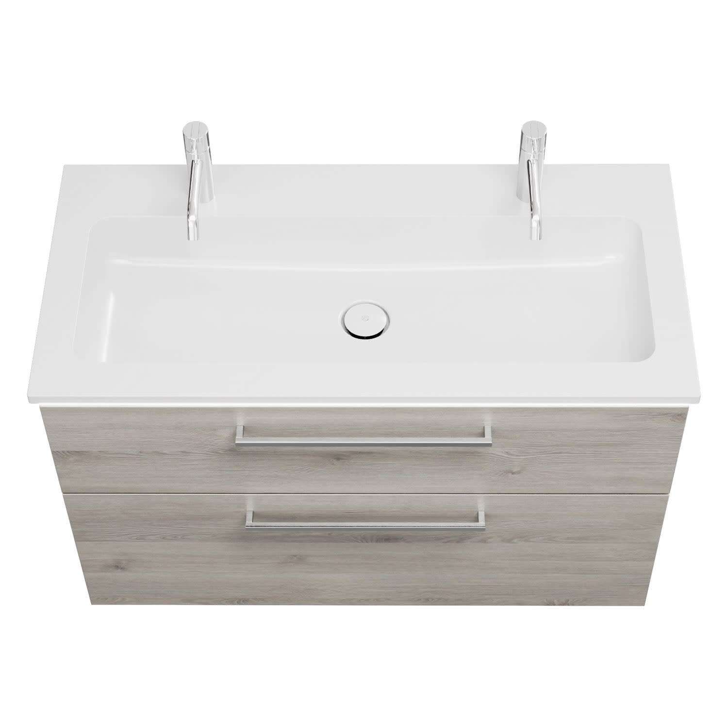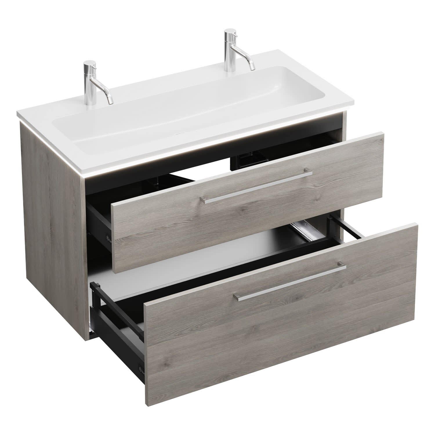 burgbad Eqio Waschtischkombination mit Mineralguss-Waschtisch und LED-Beleuchtung, 102 cm, mit Stangengriff P95