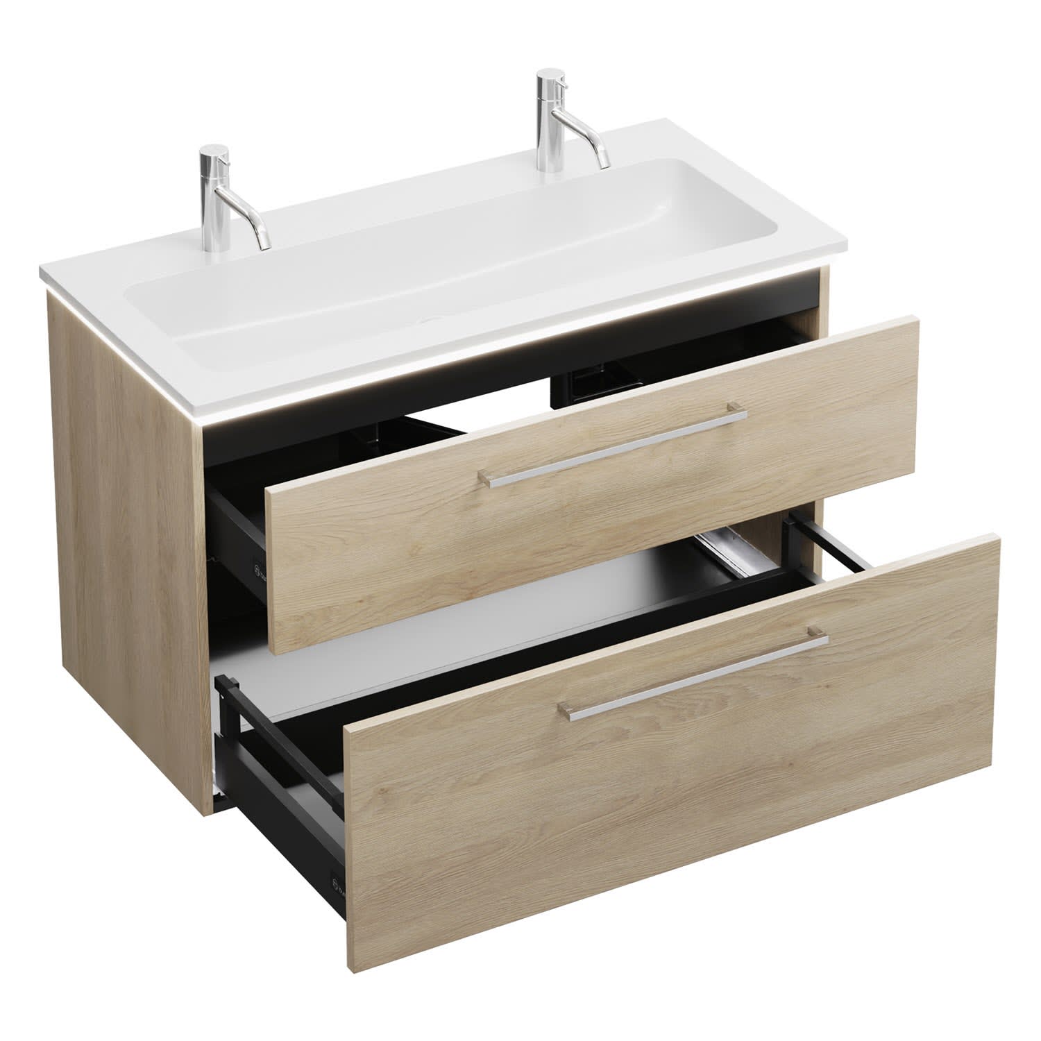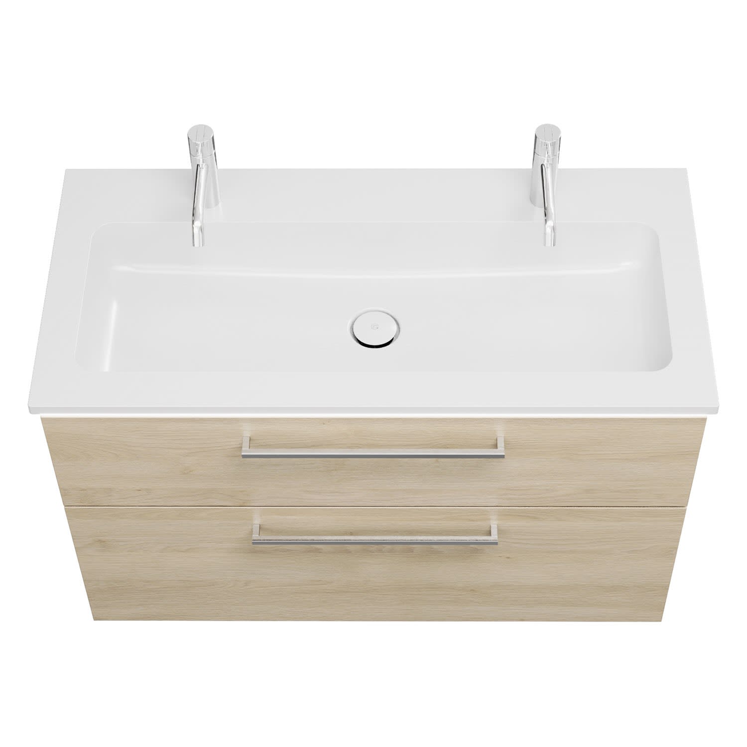 burgbad Eqio Waschtischkombination mit Mineralguss-Waschtisch und LED-Beleuchtung, 102 cm, mit Stangengriff P95