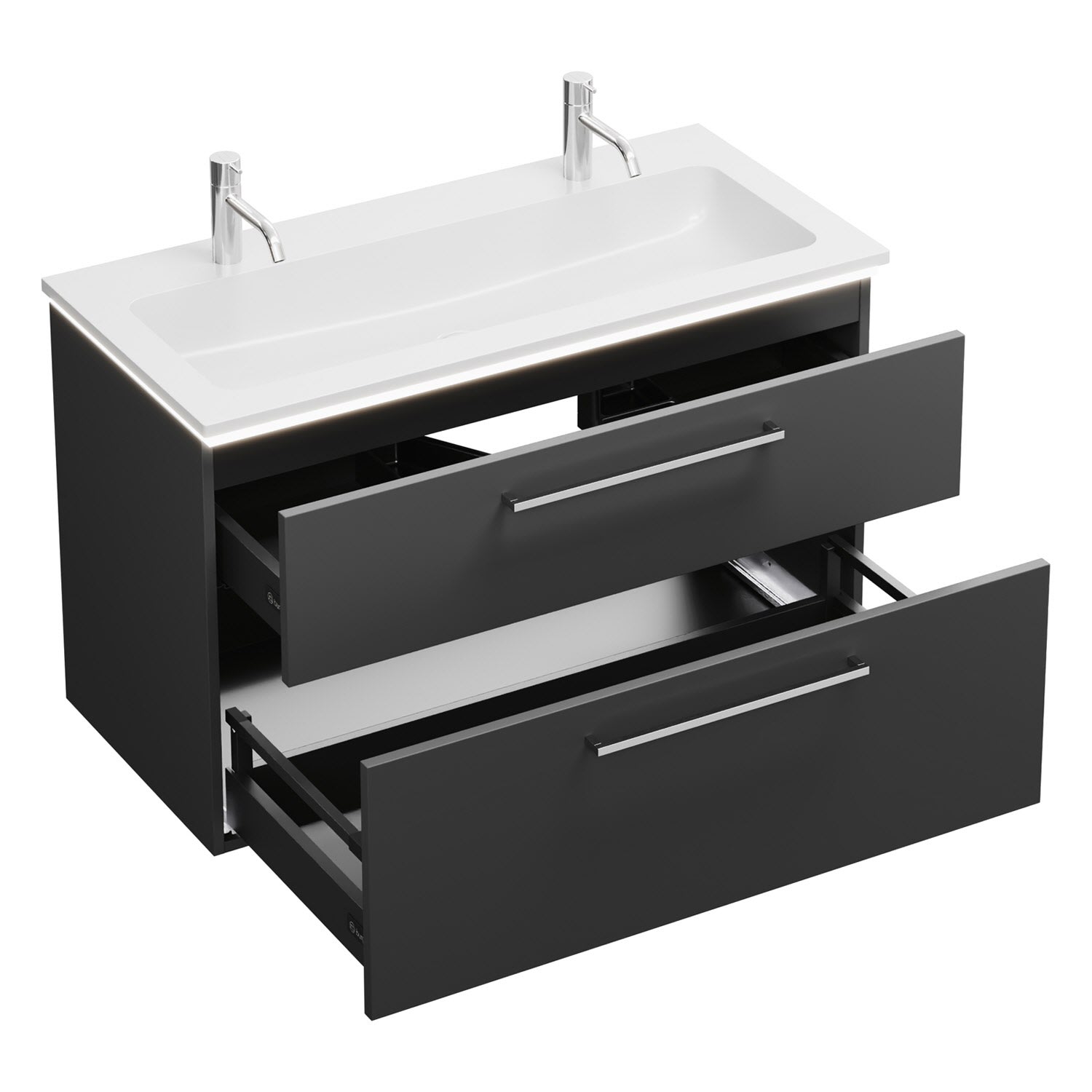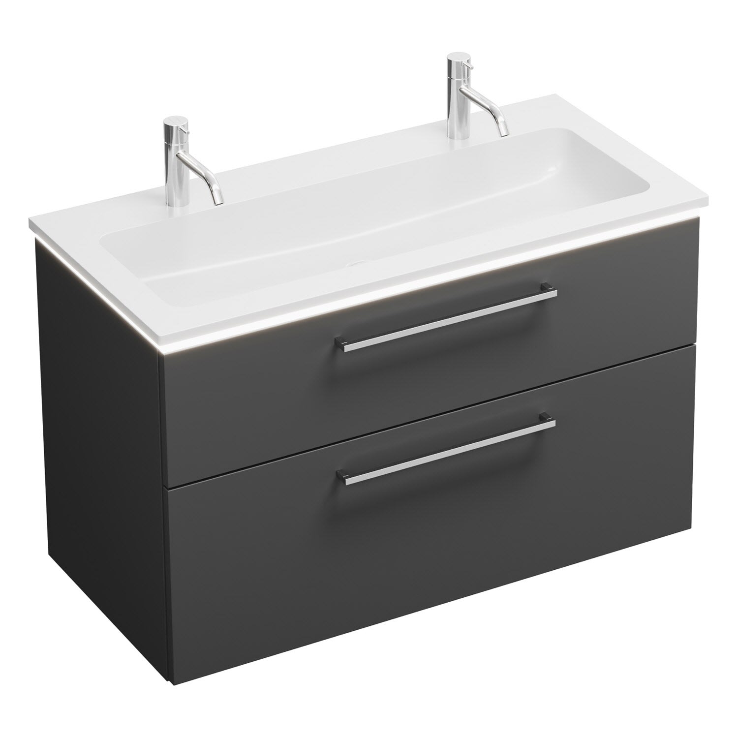 burgbad Eqio Waschtischkombination mit Mineralguss-Waschtisch und LED-Beleuchtung, 102 cm, mit Stangengriff P95