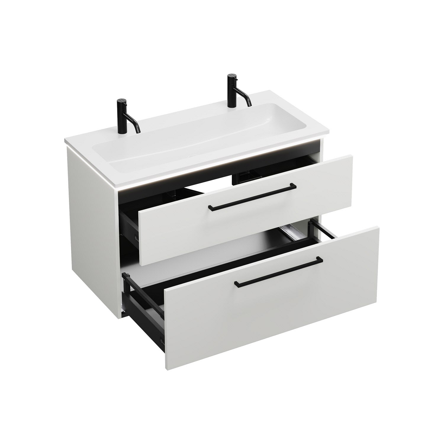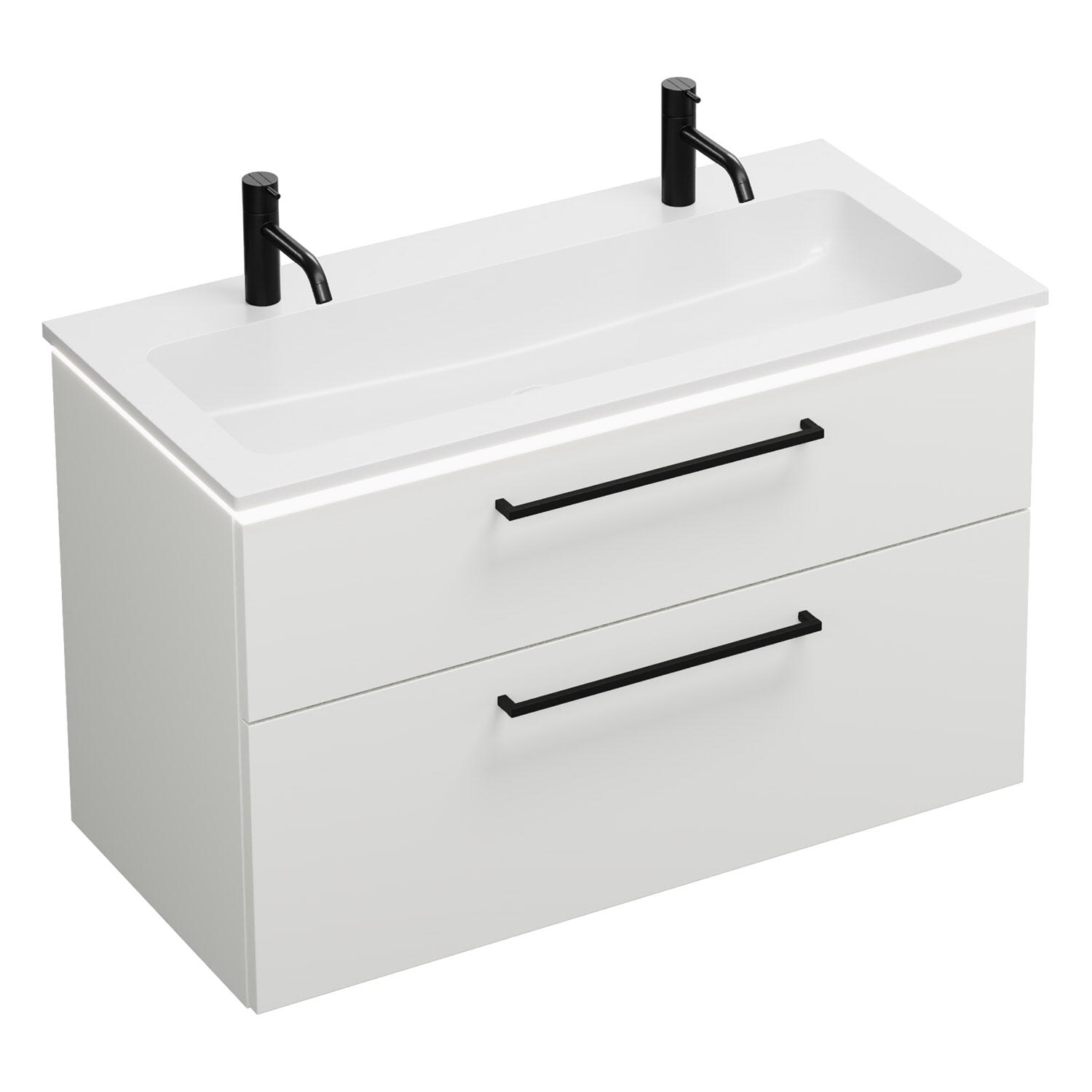 burgbad Eqio Waschtischkombination mit Mineralguss-Waschtisch und LED-Beleuchtung, 102 cm, mit Stangengriff G0234