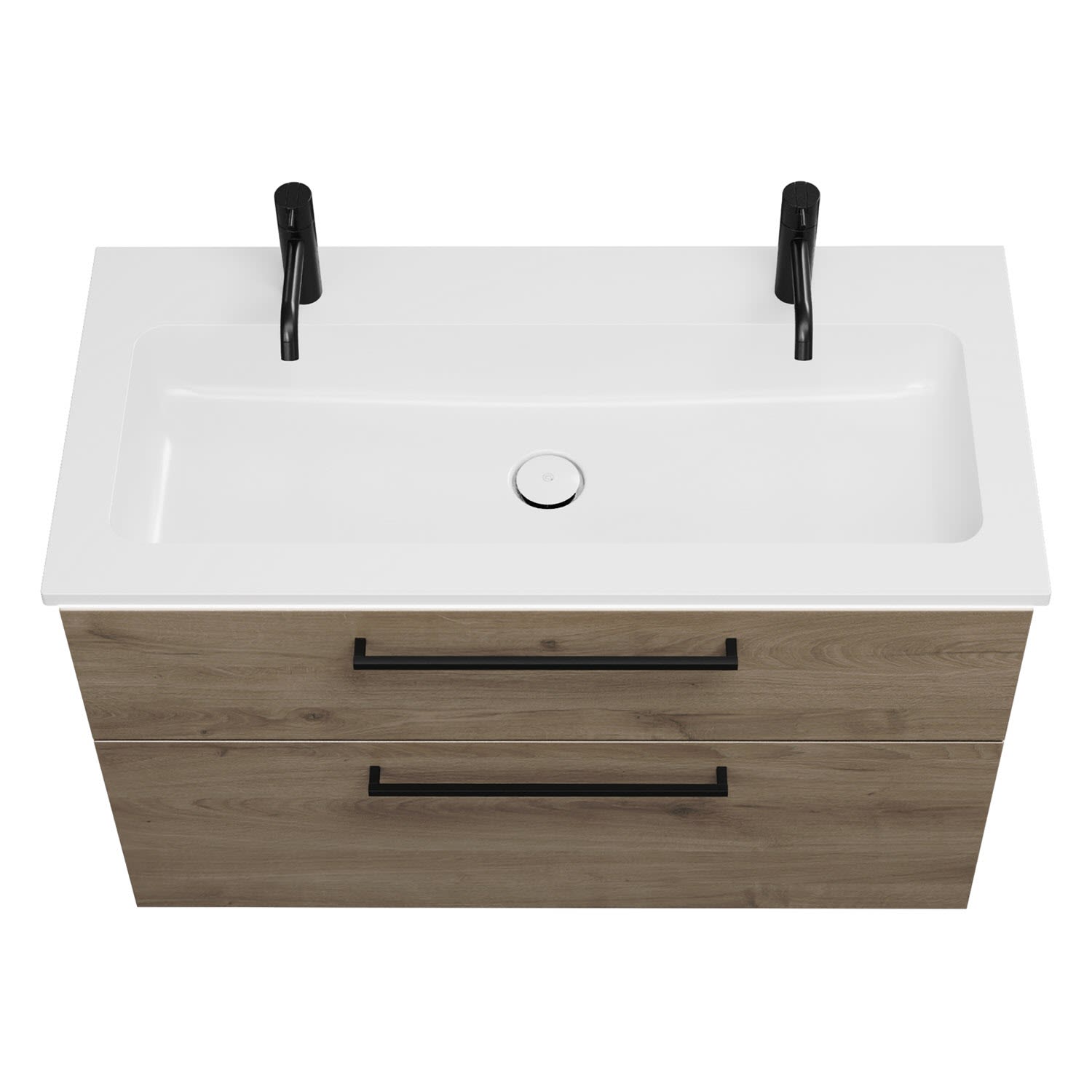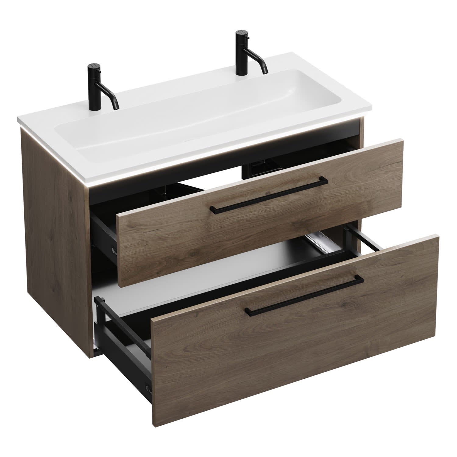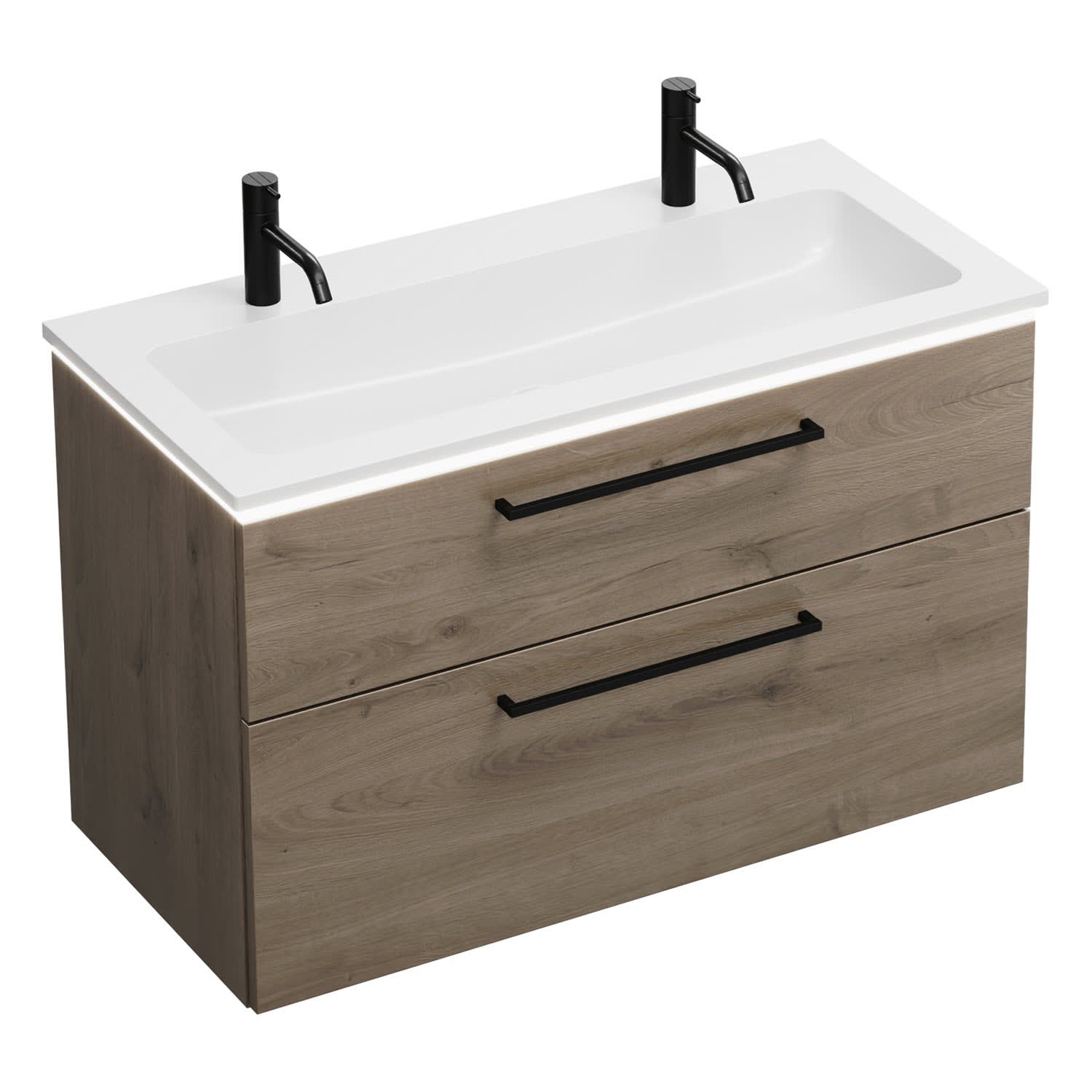 burgbad Eqio Waschtischkombination mit Mineralguss-Waschtisch und LED-Beleuchtung, 102 cm, mit Stangengriff G0234