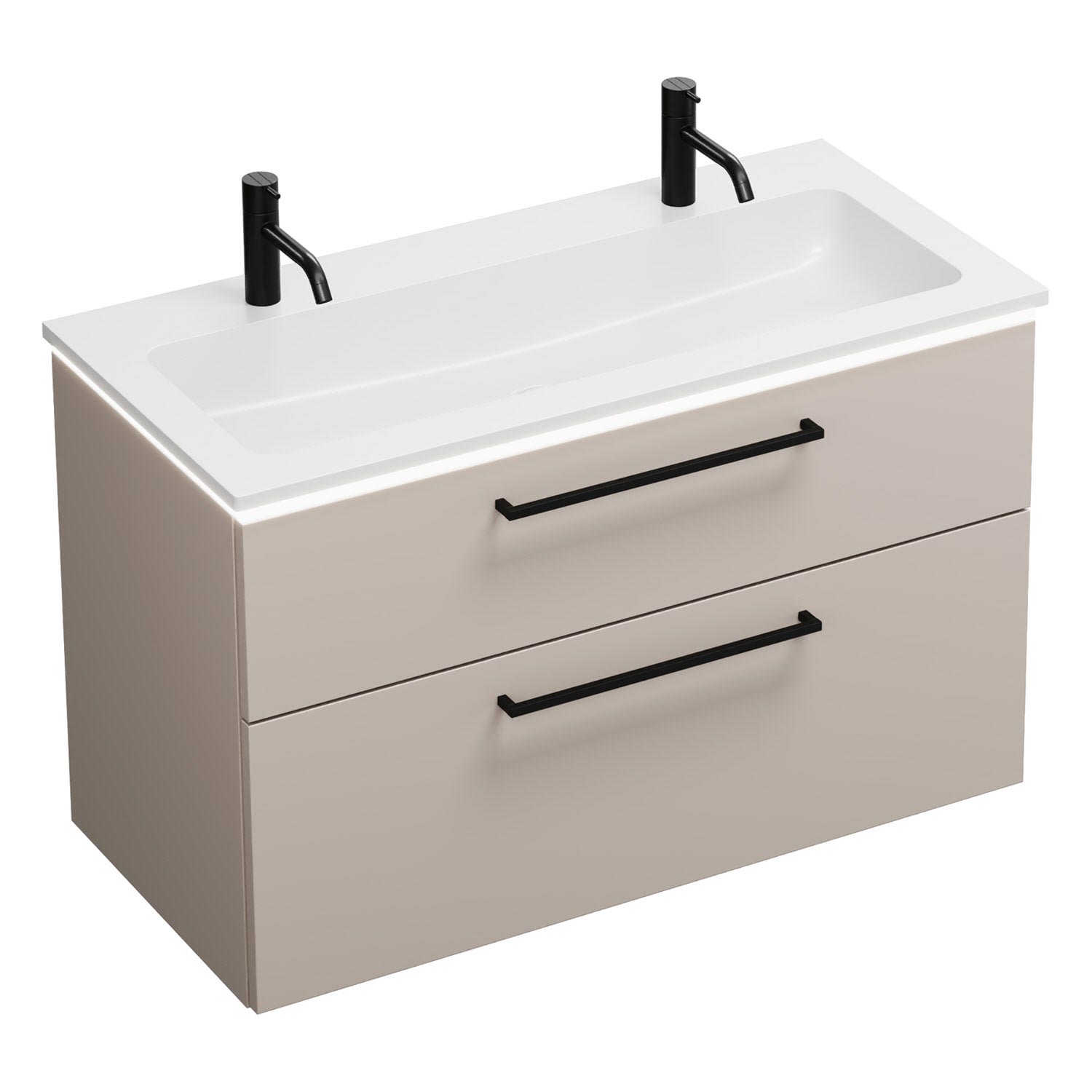 burgbad Eqio Waschtischkombination mit Mineralguss-Waschtisch und LED-Beleuchtung, 102 cm, mit Stangengriff G0234