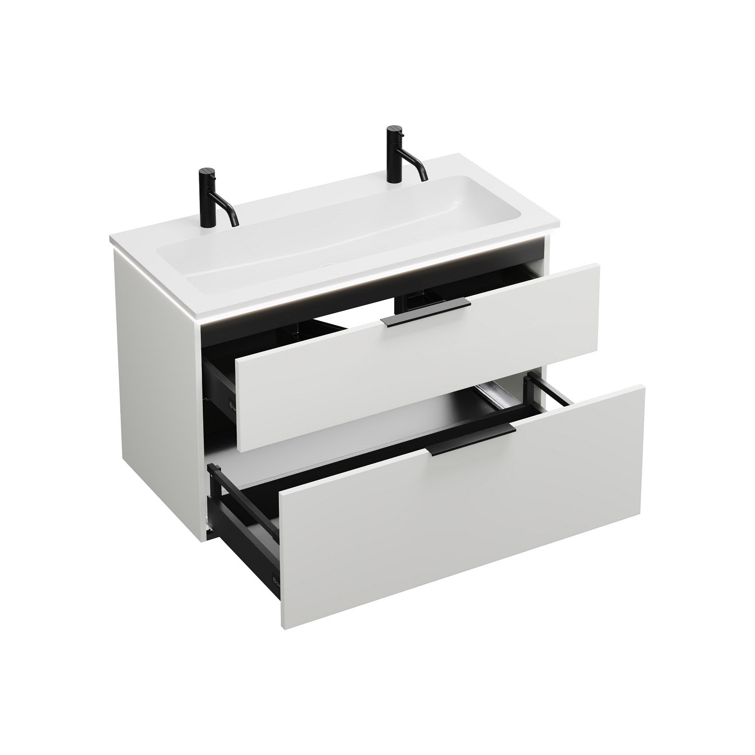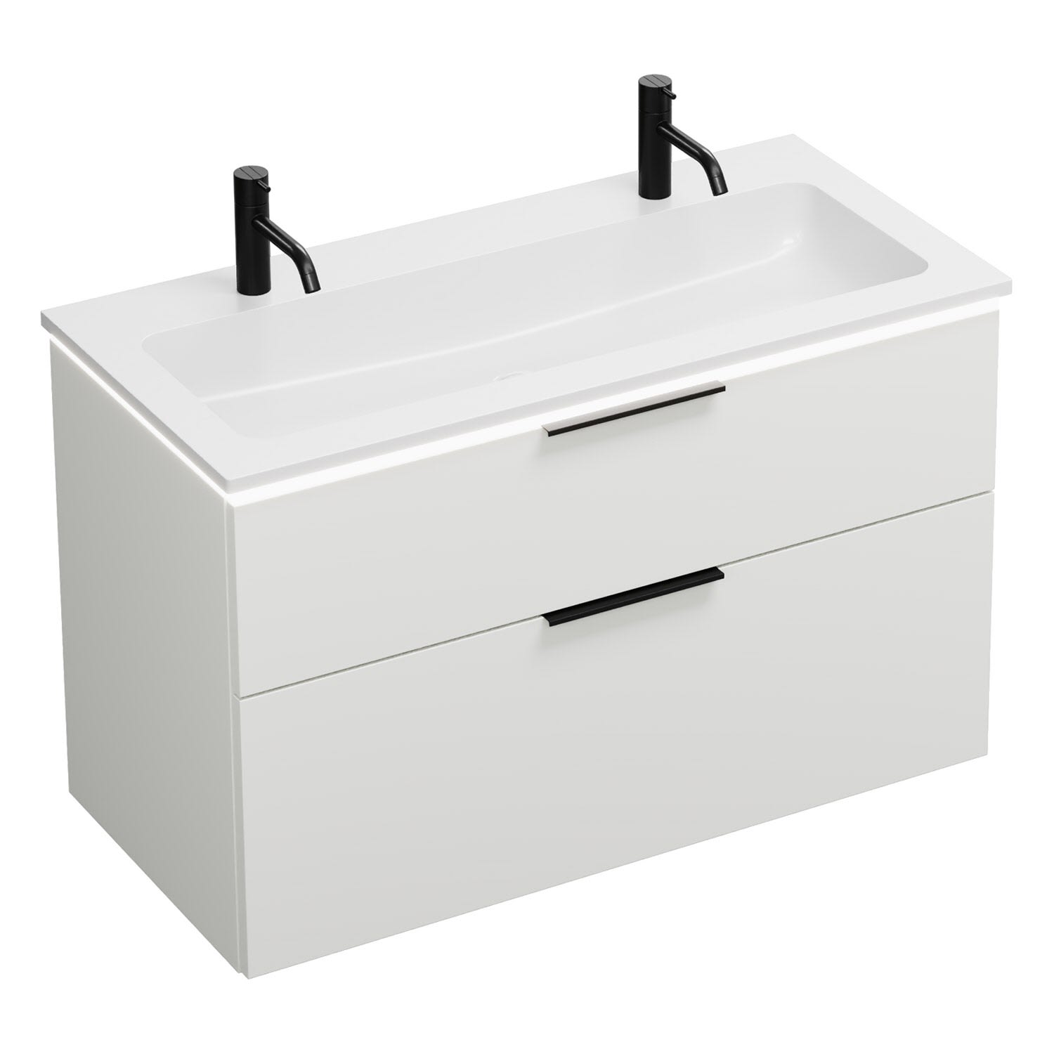 burgbad Eqio Waschtischkombination mit Mineralguss-Waschtisch und LED-Beleuchtung, 102 cm, mit Griff G0200