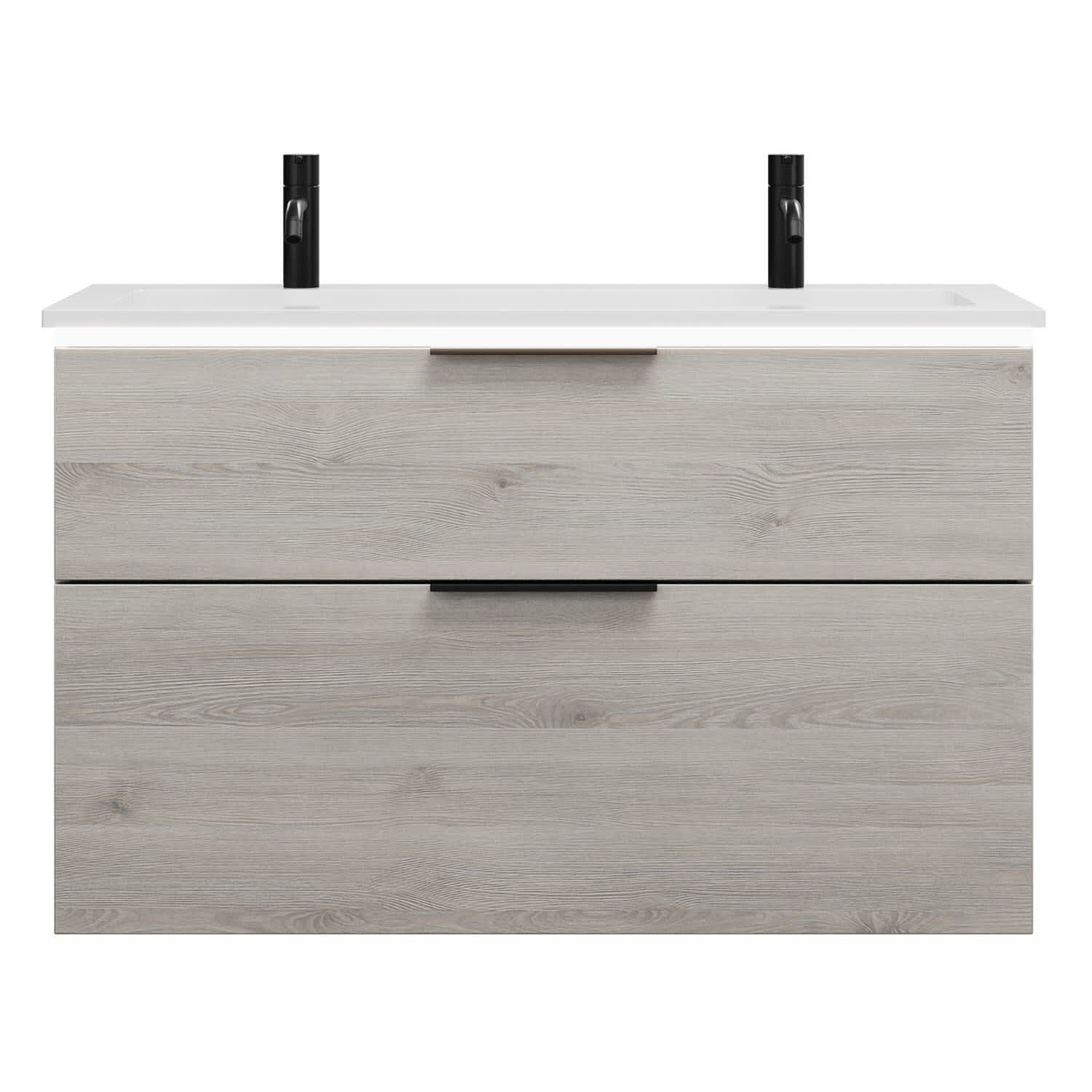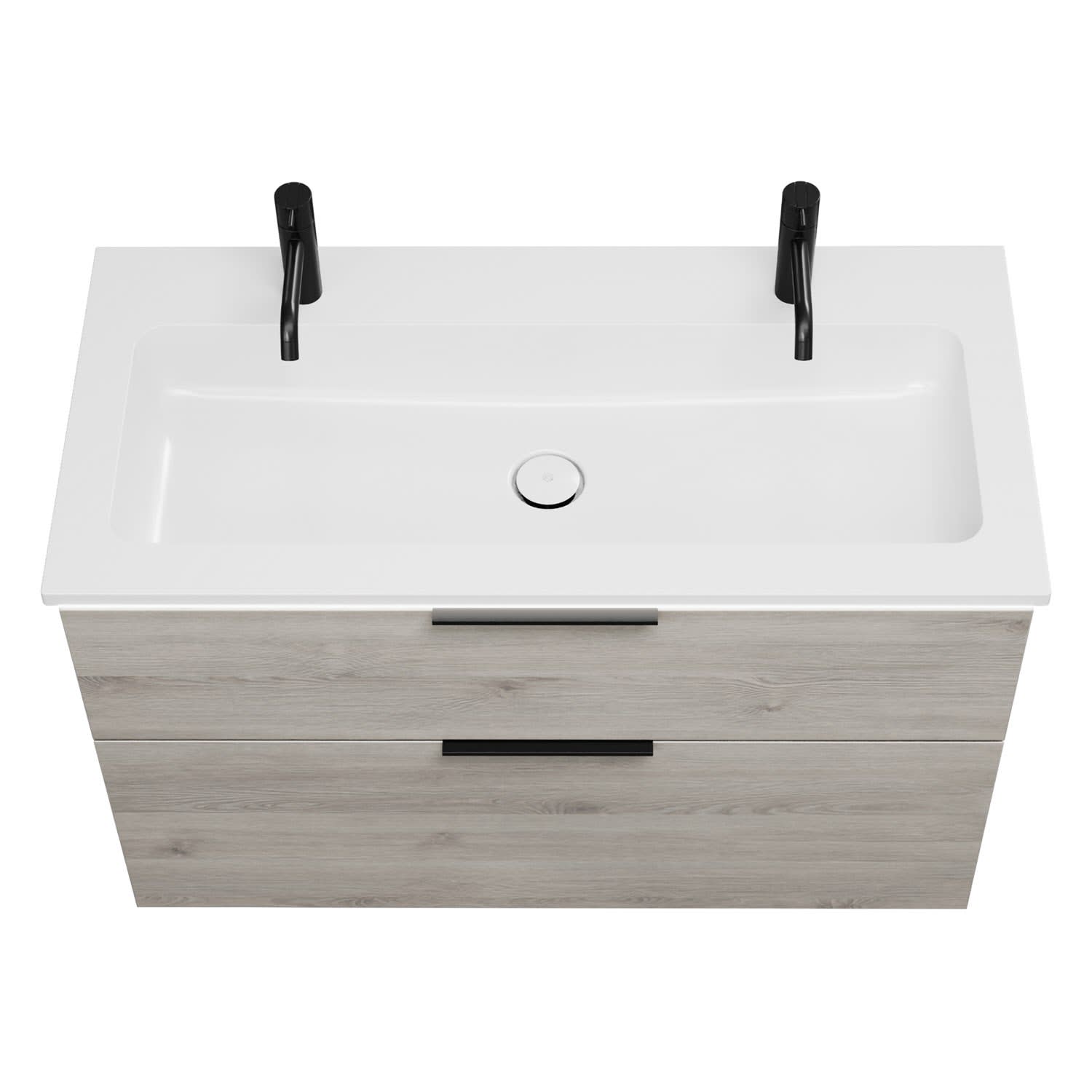 - 1 Schublade oben, 35 cm tief, mit Siphonausschnitt und Inneneinteilung
