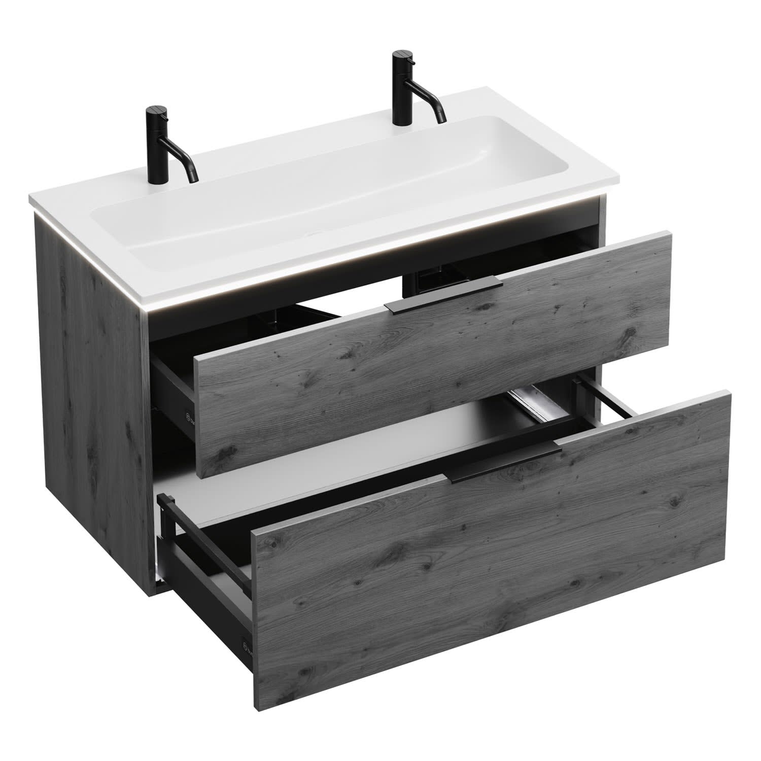 burgbad Eqio Waschtischkombination mit Mineralguss-Waschtisch und LED-Beleuchtung, 102 cm, mit Griff G0200