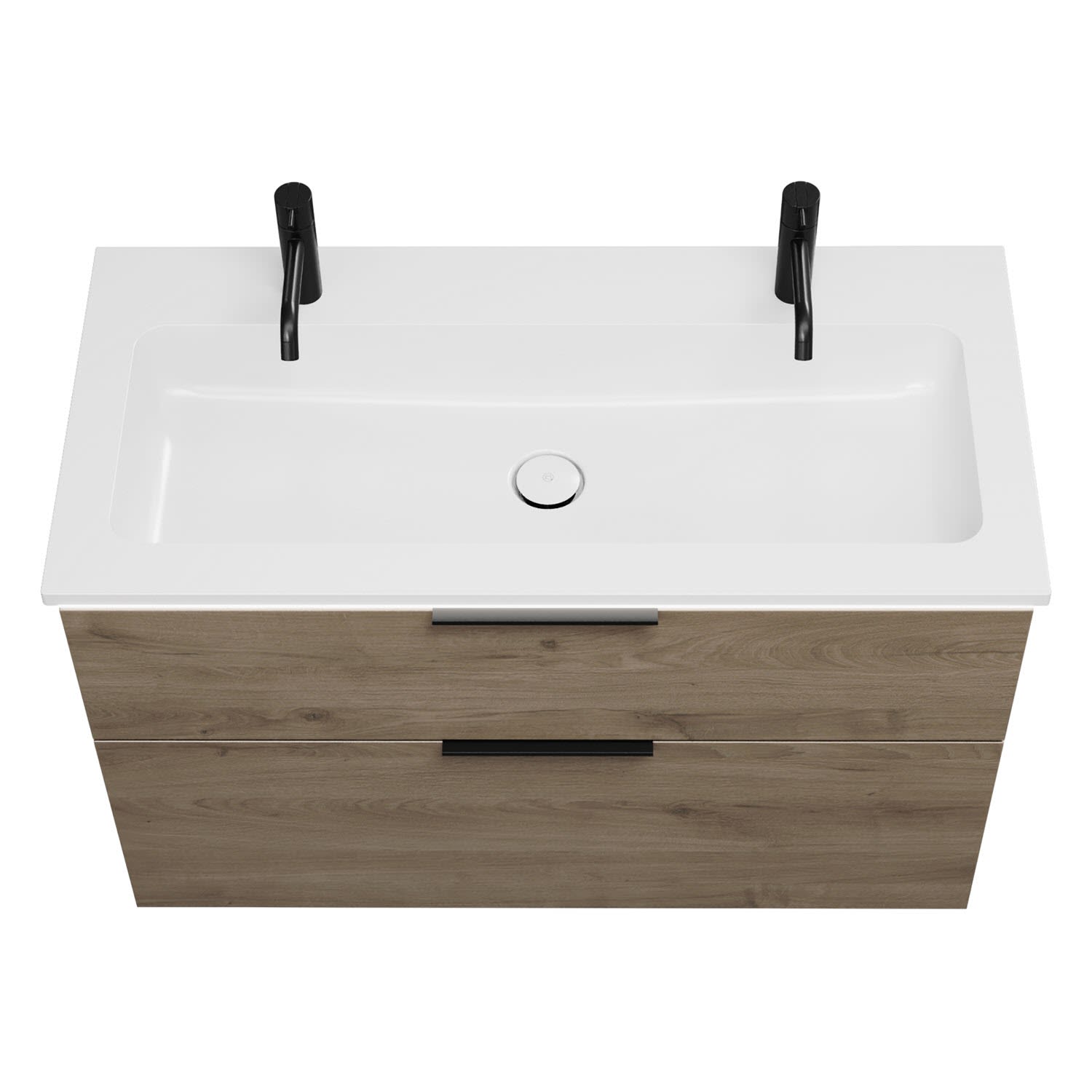 burgbad Eqio Waschtischkombination mit Mineralguss-Waschtisch und LED-Beleuchtung, 102 cm, mit Griff G0200