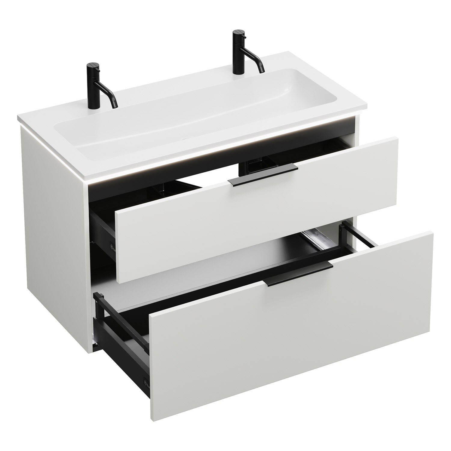 burgbad Eqio Waschtischkombination mit Mineralguss-Waschtisch und LED-Beleuchtung, 102 cm, mit Griff G0200