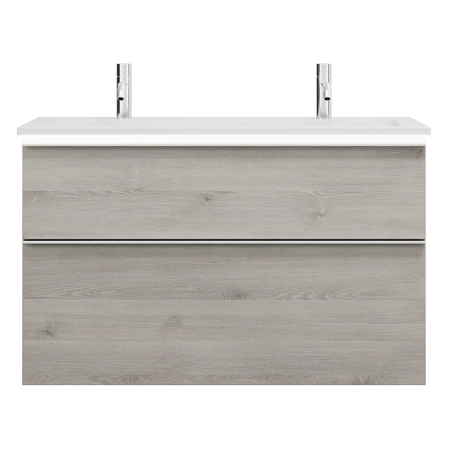 - 1 Schublade oben, 35 cm tief, mit Siphonausschnitt und Inneneinteilung