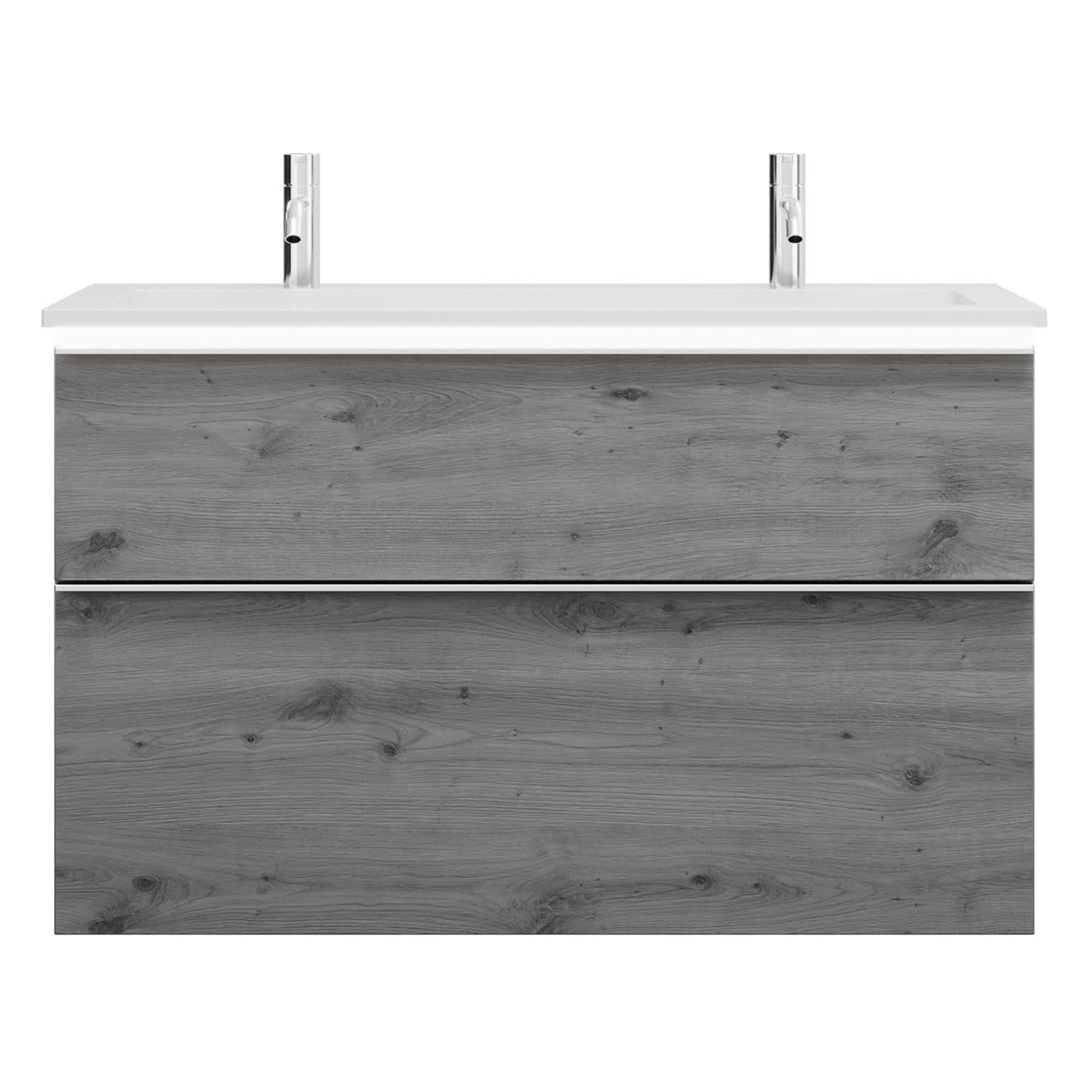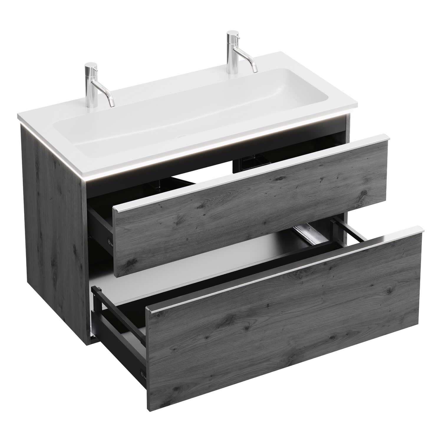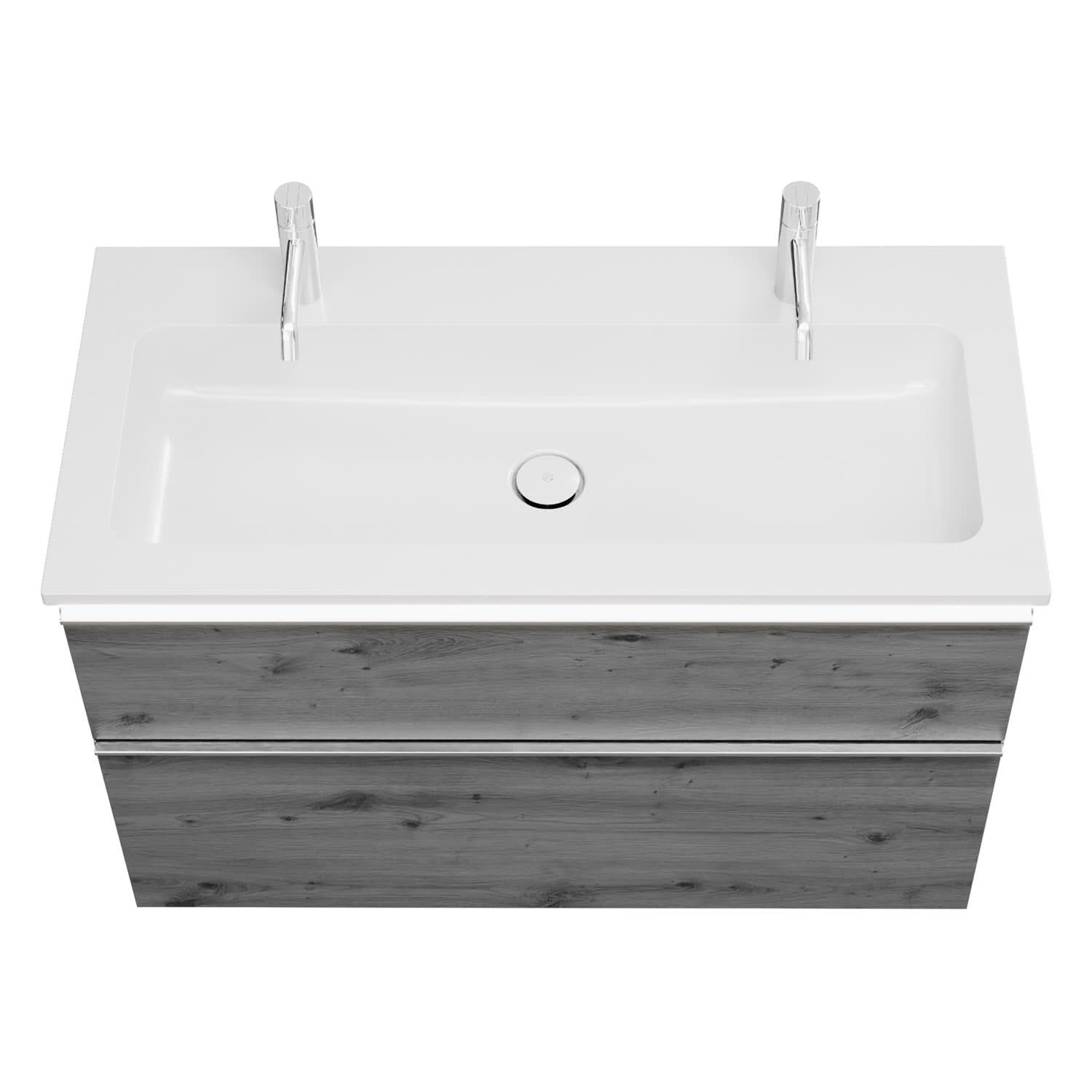 burgbad Eqio Waschtischkombination mit Mineralguss-Waschtisch und LED-Beleuchtung, 102 cm, mit Griffleiste G0251