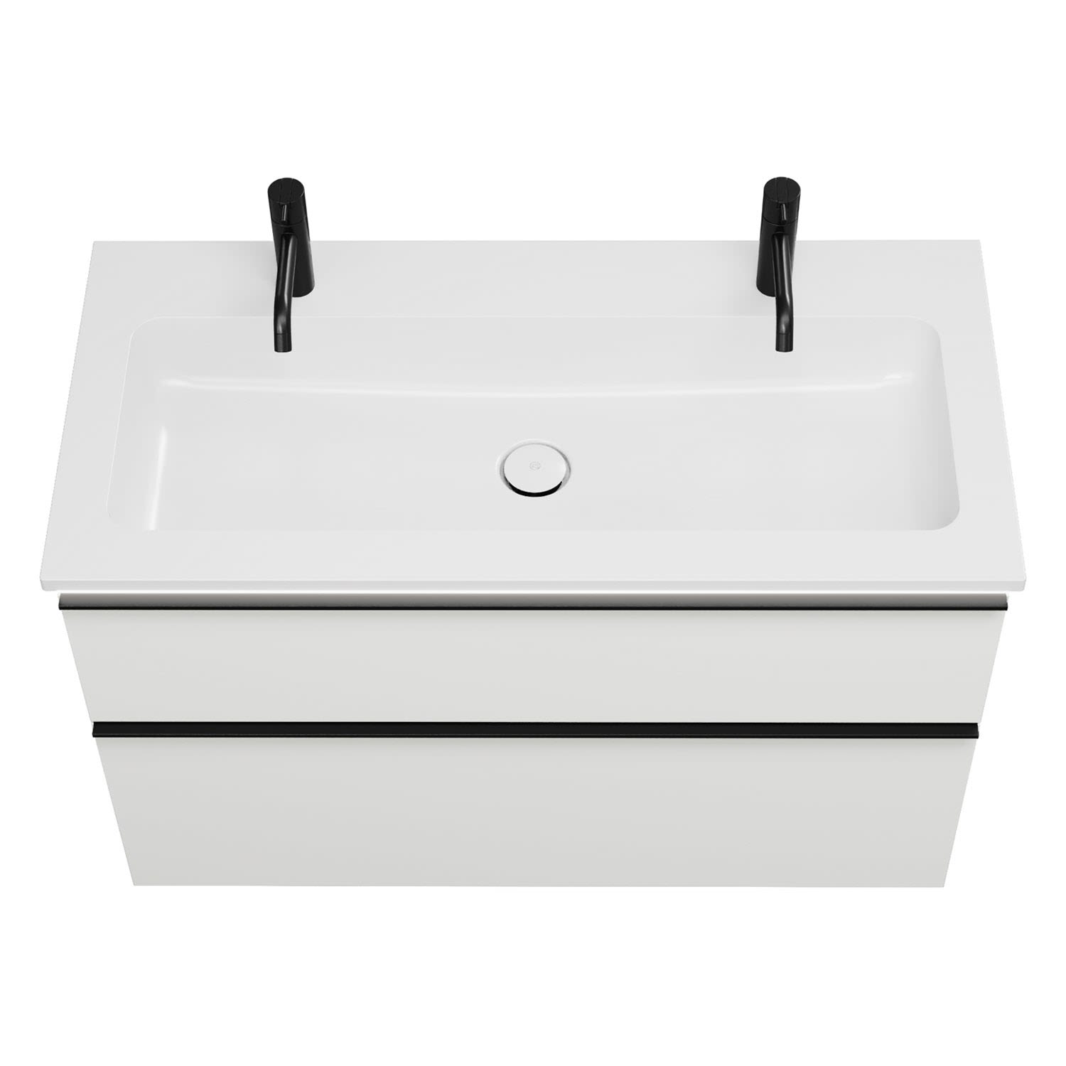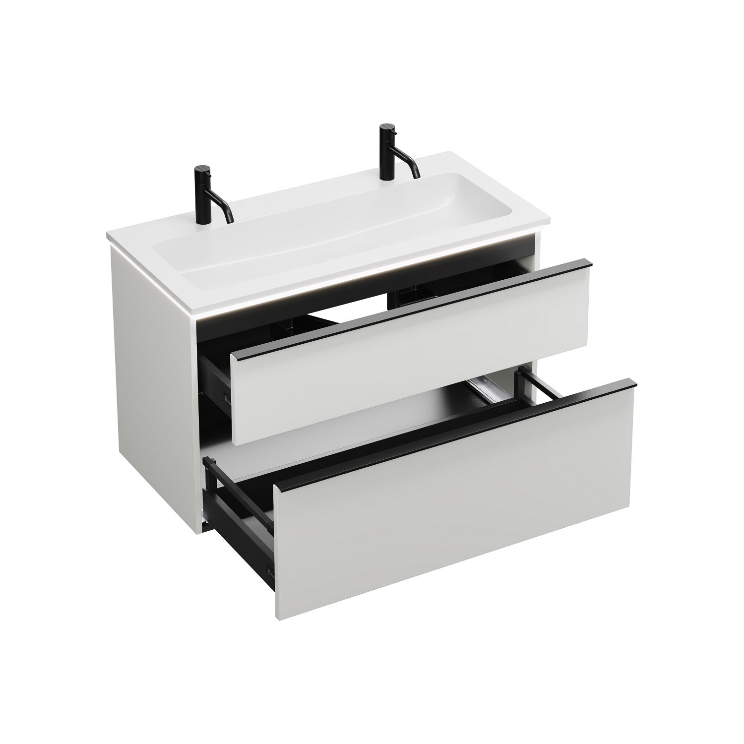 burgbad Eqio Waschtischkombination mit Mineralguss-Waschtisch und LED-Beleuchtung, 102 cm, mit Griffleiste G0252