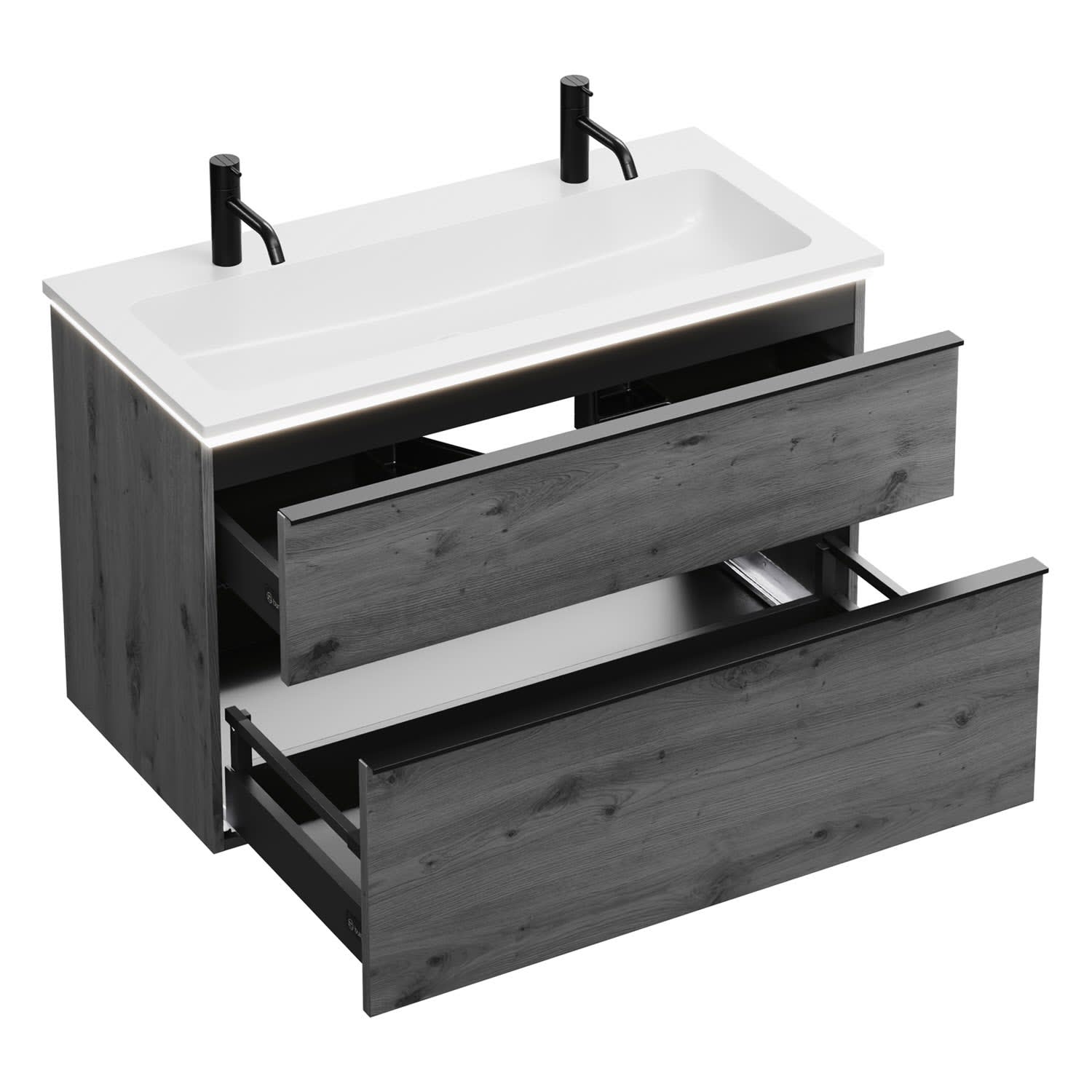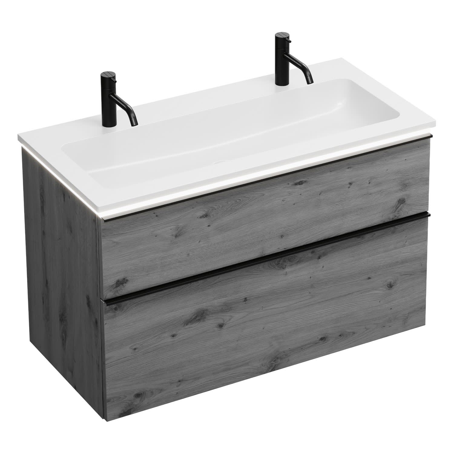 burgbad Eqio Waschtischkombination mit Mineralguss-Waschtisch und LED-Beleuchtung, 102 cm, mit Griffleiste G0252