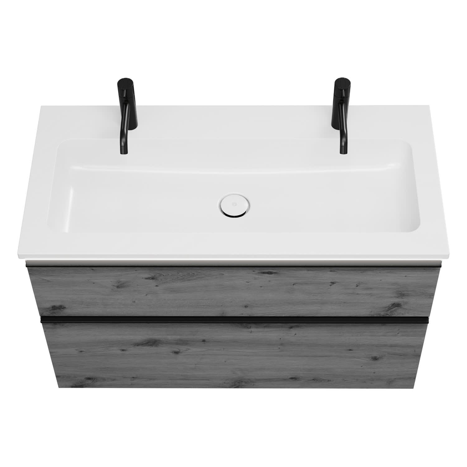- 1 Schublade oben, 35 cm tief, mit Siphonausschnitt und Inneneinteilung