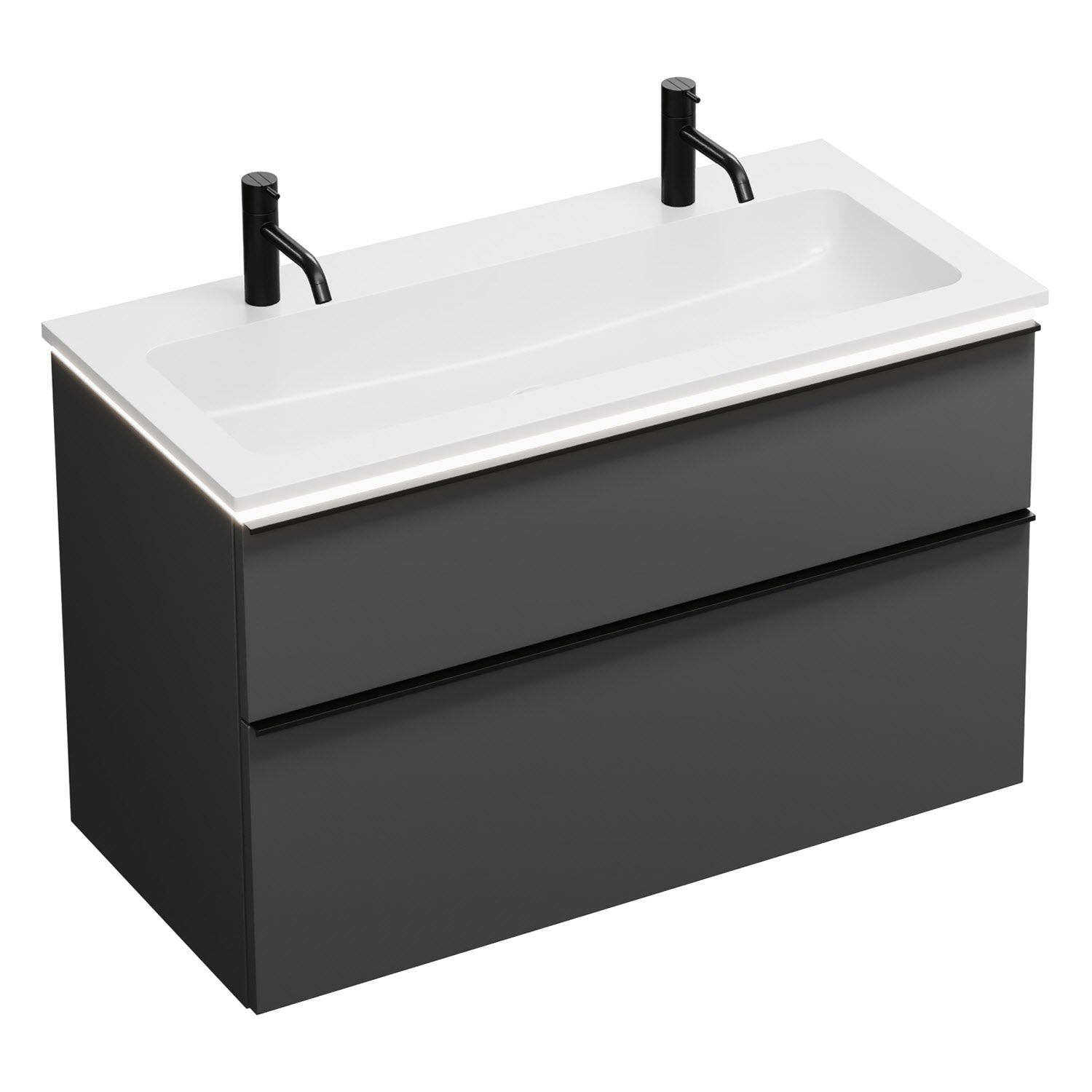 burgbad Eqio Waschtischkombination mit Mineralguss-Waschtisch und LED-Beleuchtung, 102 cm, mit Griffleiste G0252