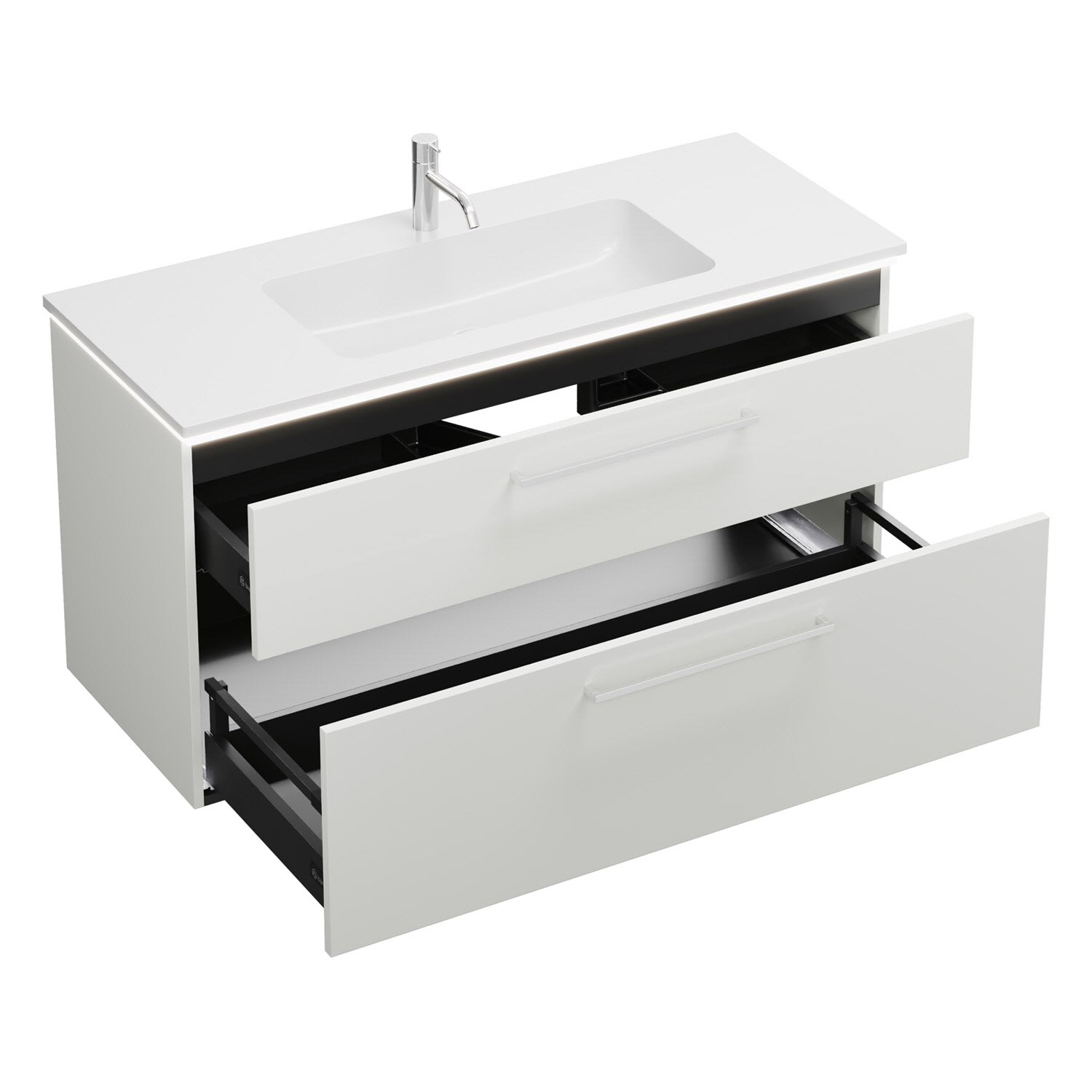 burgbad Eqio Waschtischkombination mit Mineralguss-Waschtisch und LED-Beleuchtung, 122 cm, mit Stangengriff P95