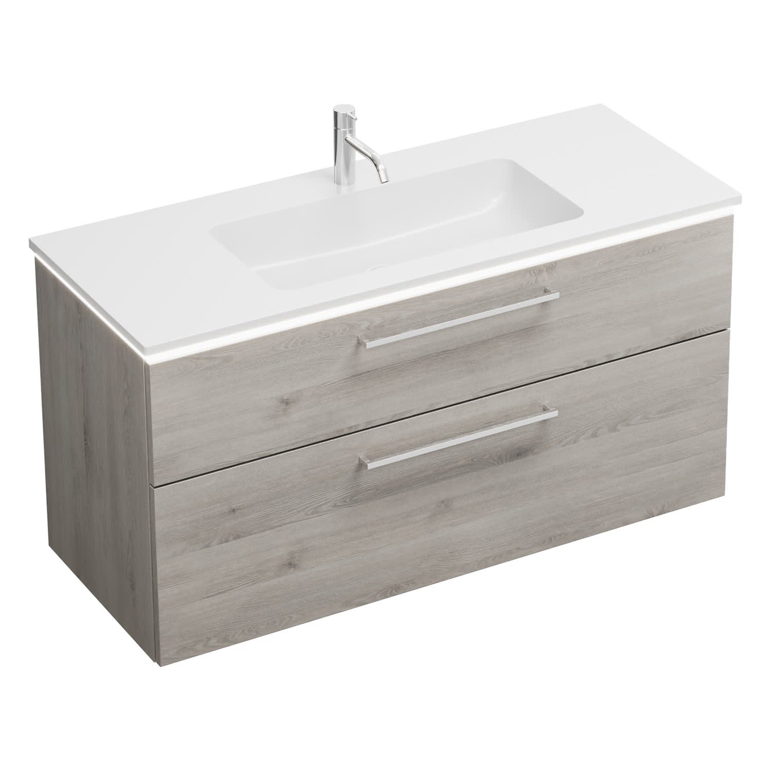 burgbad Eqio Waschtischkombination mit Mineralguss-Waschtisch und LED-Beleuchtung, 122 cm, mit Stangengriff P95