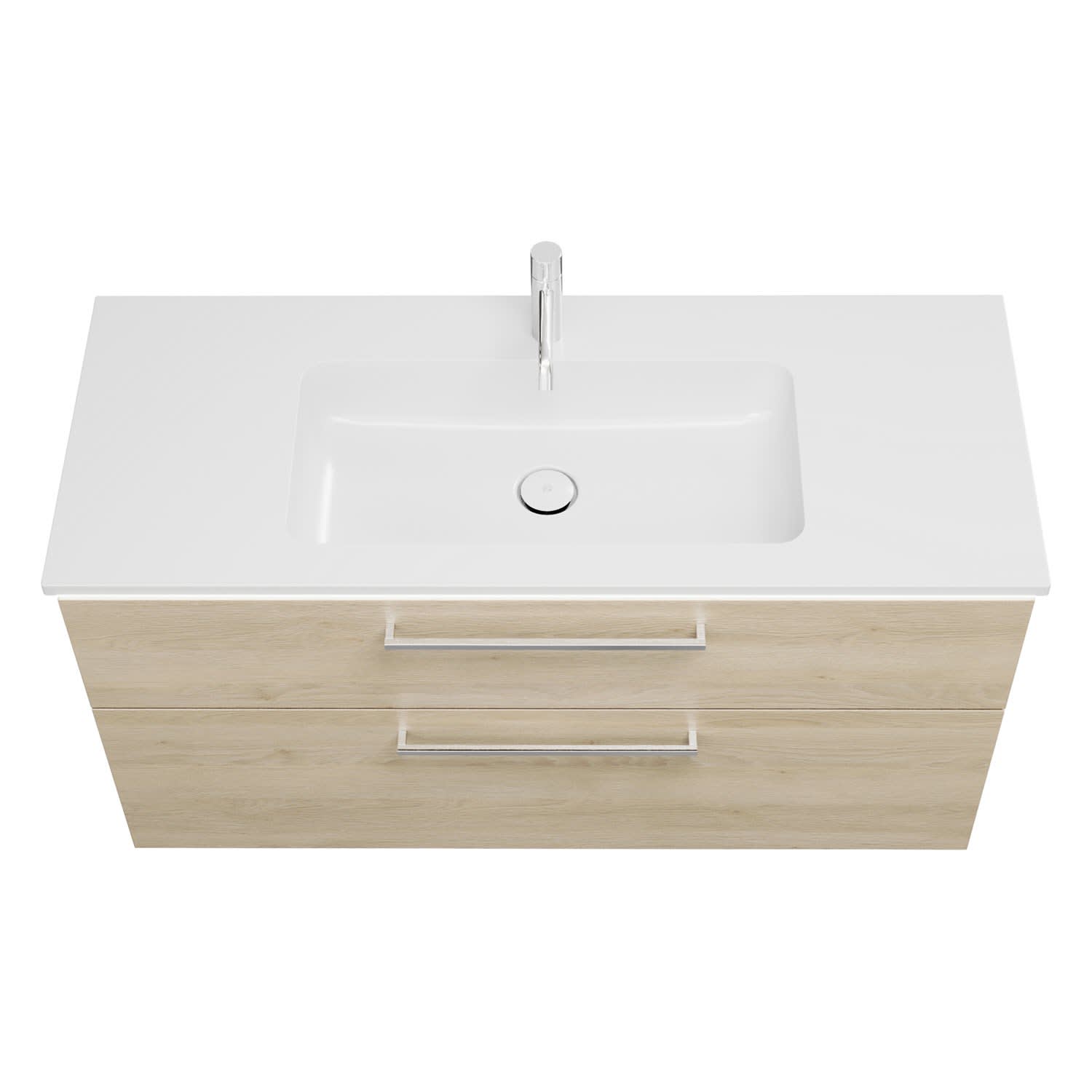 - 1 Schublade oben, 35 cm tief, mit Siphonausschnitt und Inneneinteilung