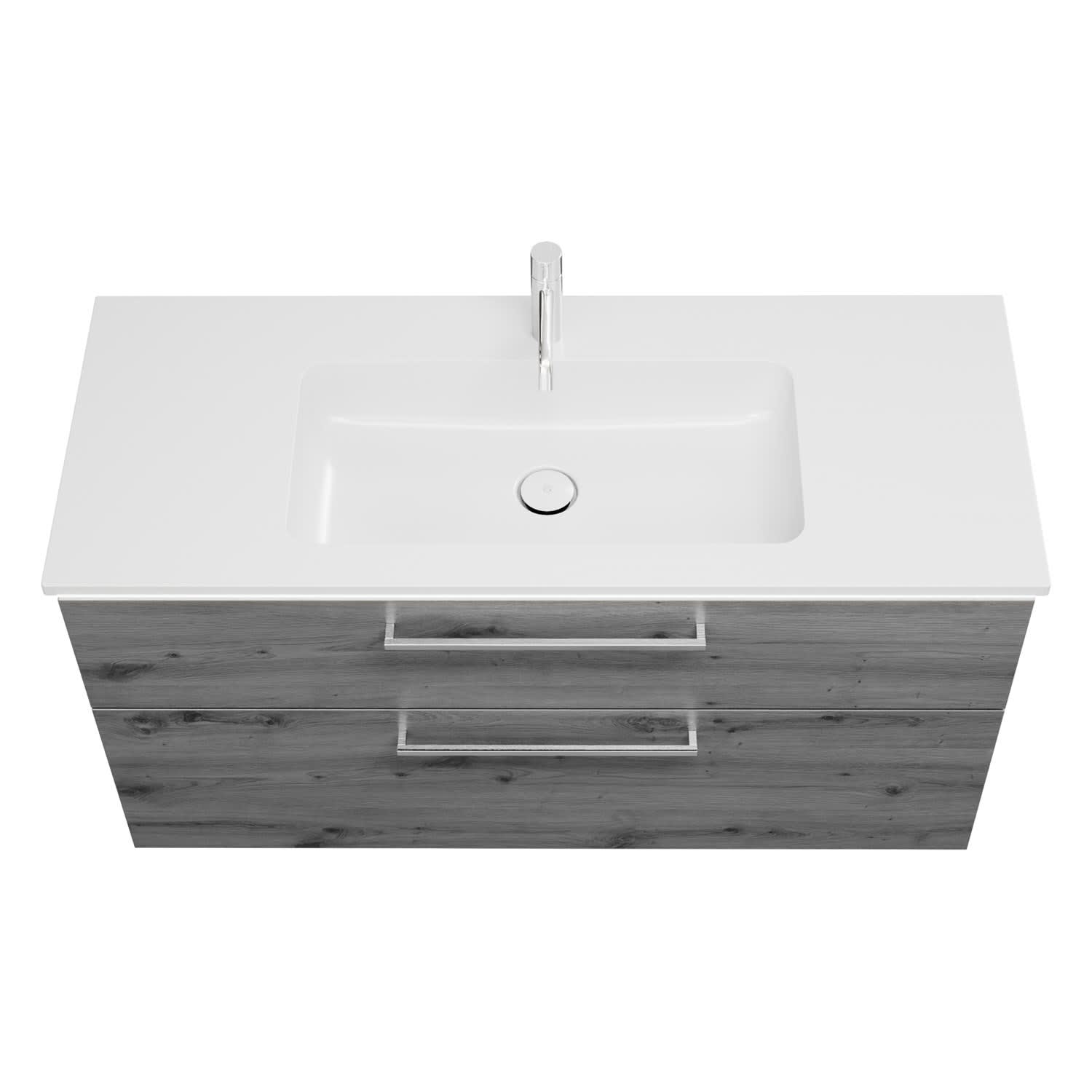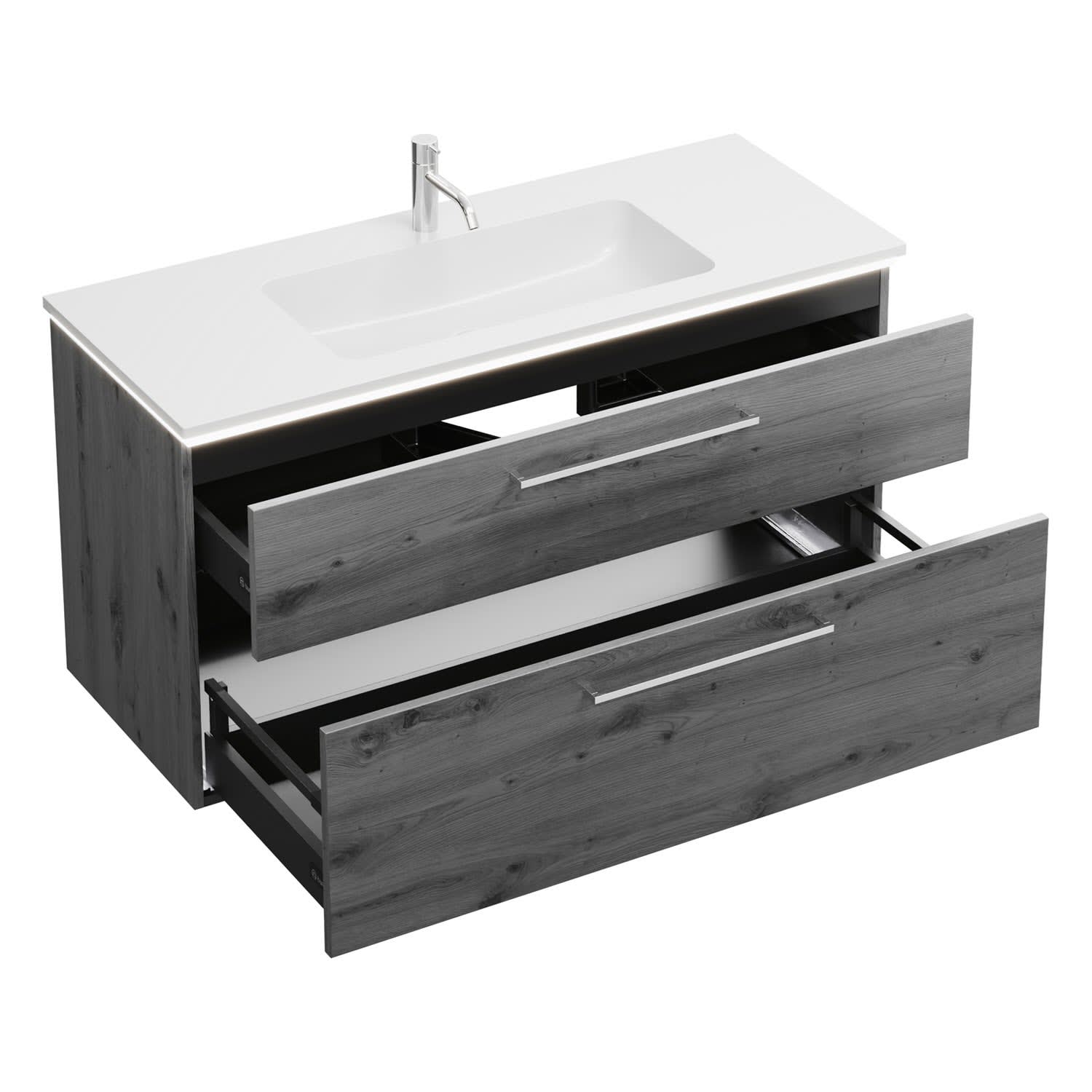 burgbad Eqio Waschtischkombination mit Mineralguss-Waschtisch und LED-Beleuchtung, 122 cm, mit Stangengriff P95