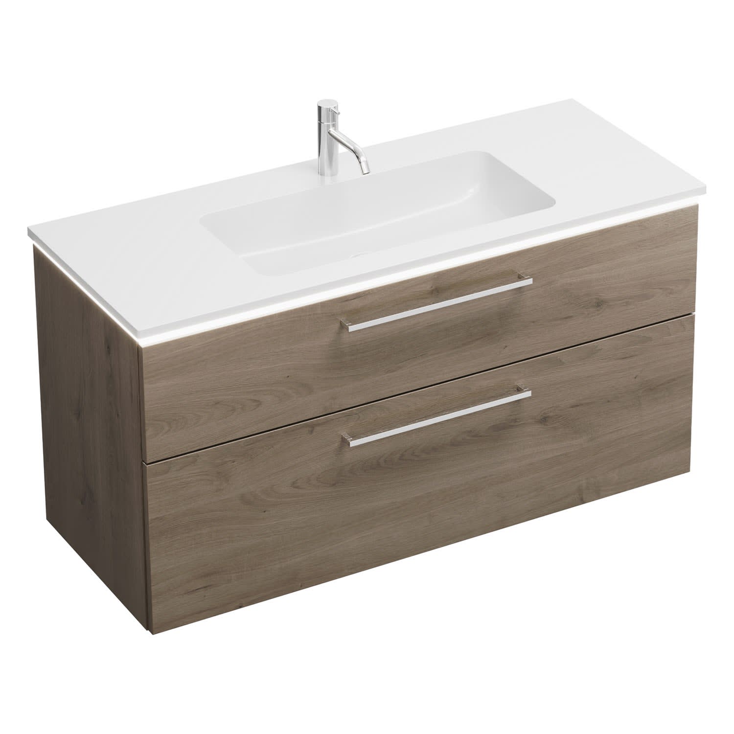 burgbad Eqio Waschtischkombination mit Mineralguss-Waschtisch und LED-Beleuchtung, 122 cm, mit Stangengriff P95