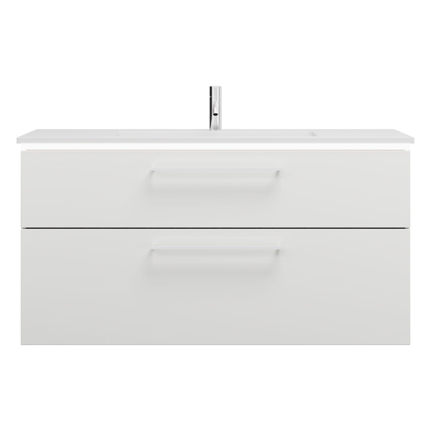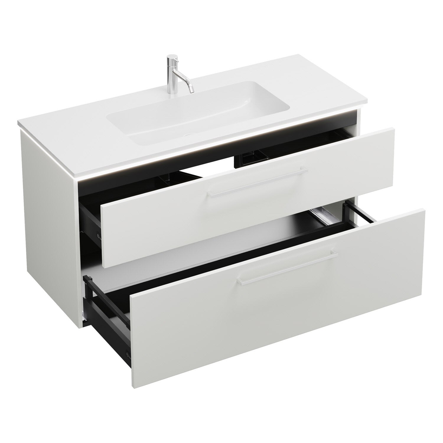 - 1 Schublade oben, 35 cm tief, mit Siphonausschnitt und Inneneinteilung