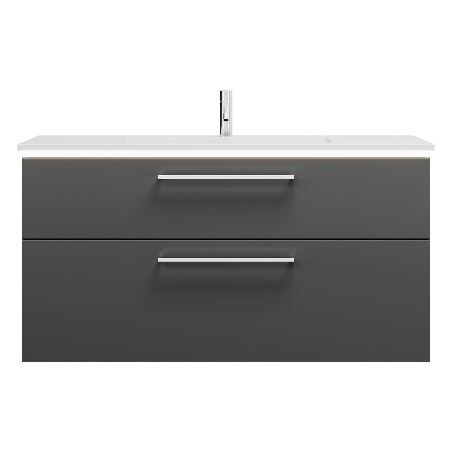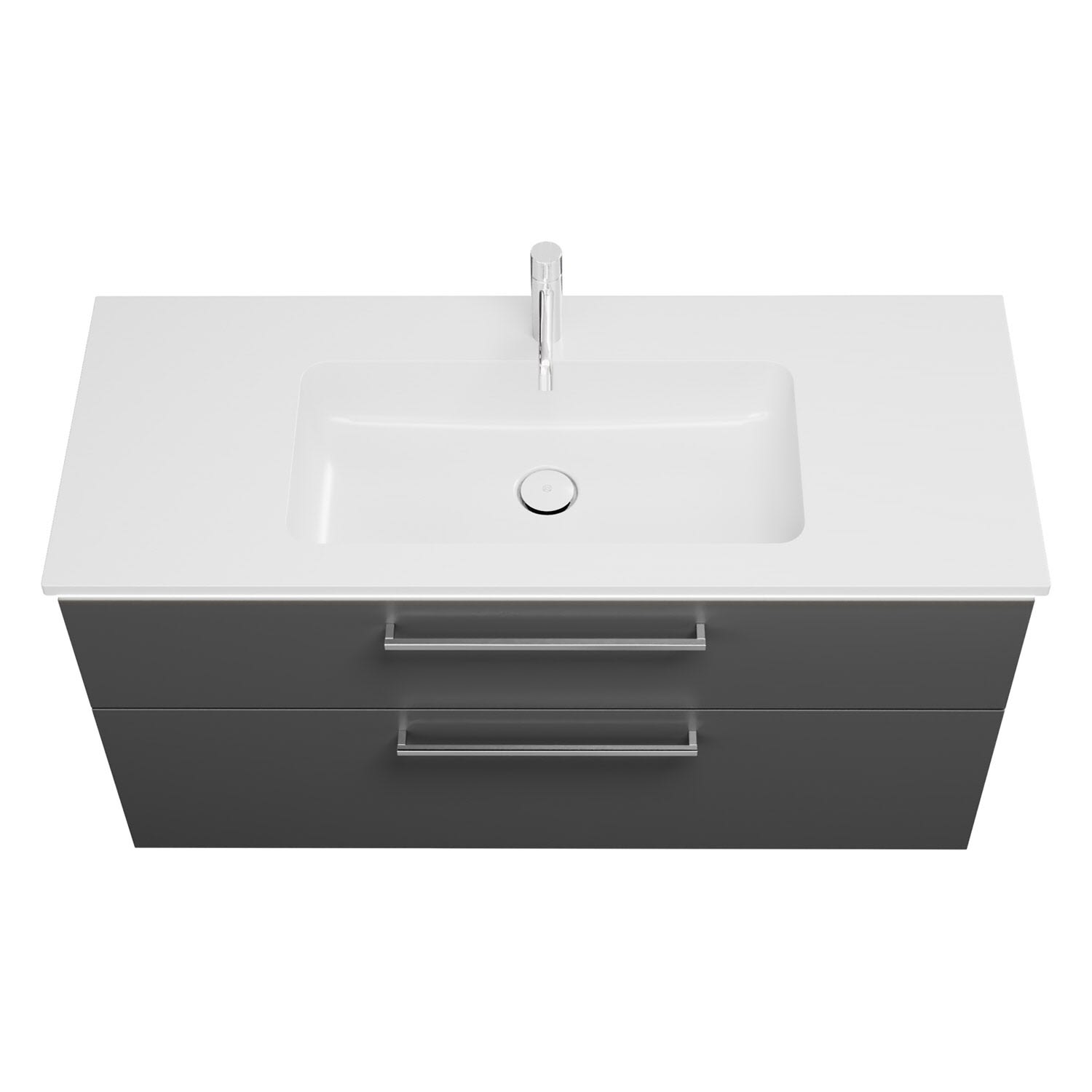- 1 Schublade oben, 35 cm tief, mit Siphonausschnitt und Inneneinteilung