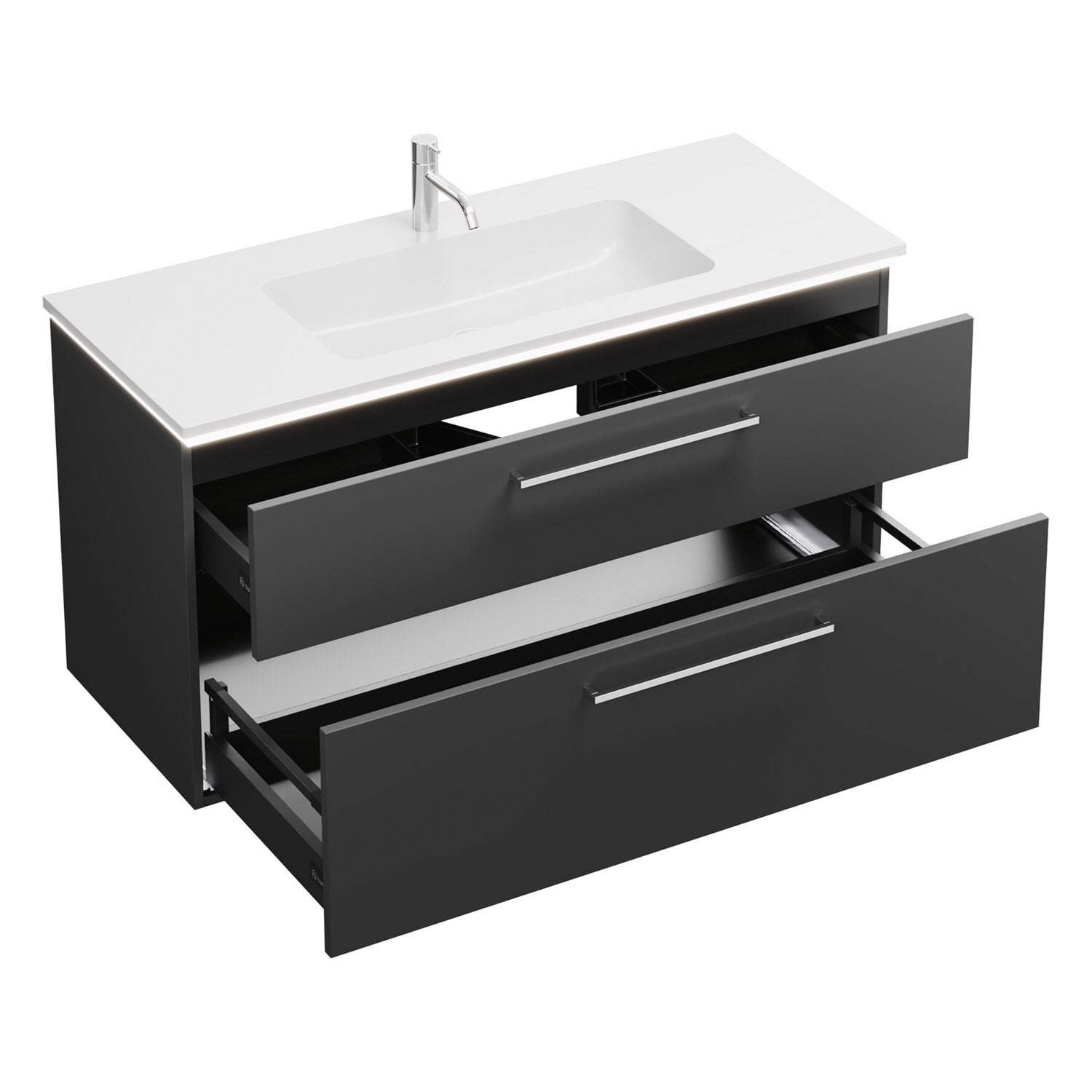 burgbad Eqio Waschtischkombination mit Mineralguss-Waschtisch und LED-Beleuchtung, 122 cm, mit Stangengriff P95