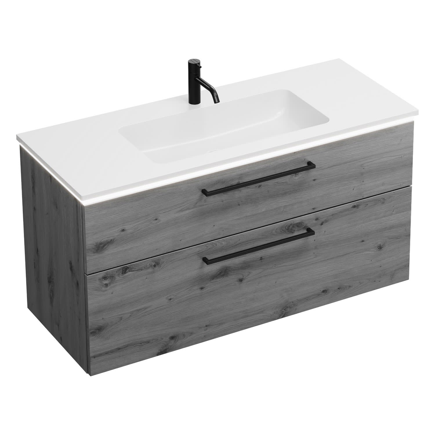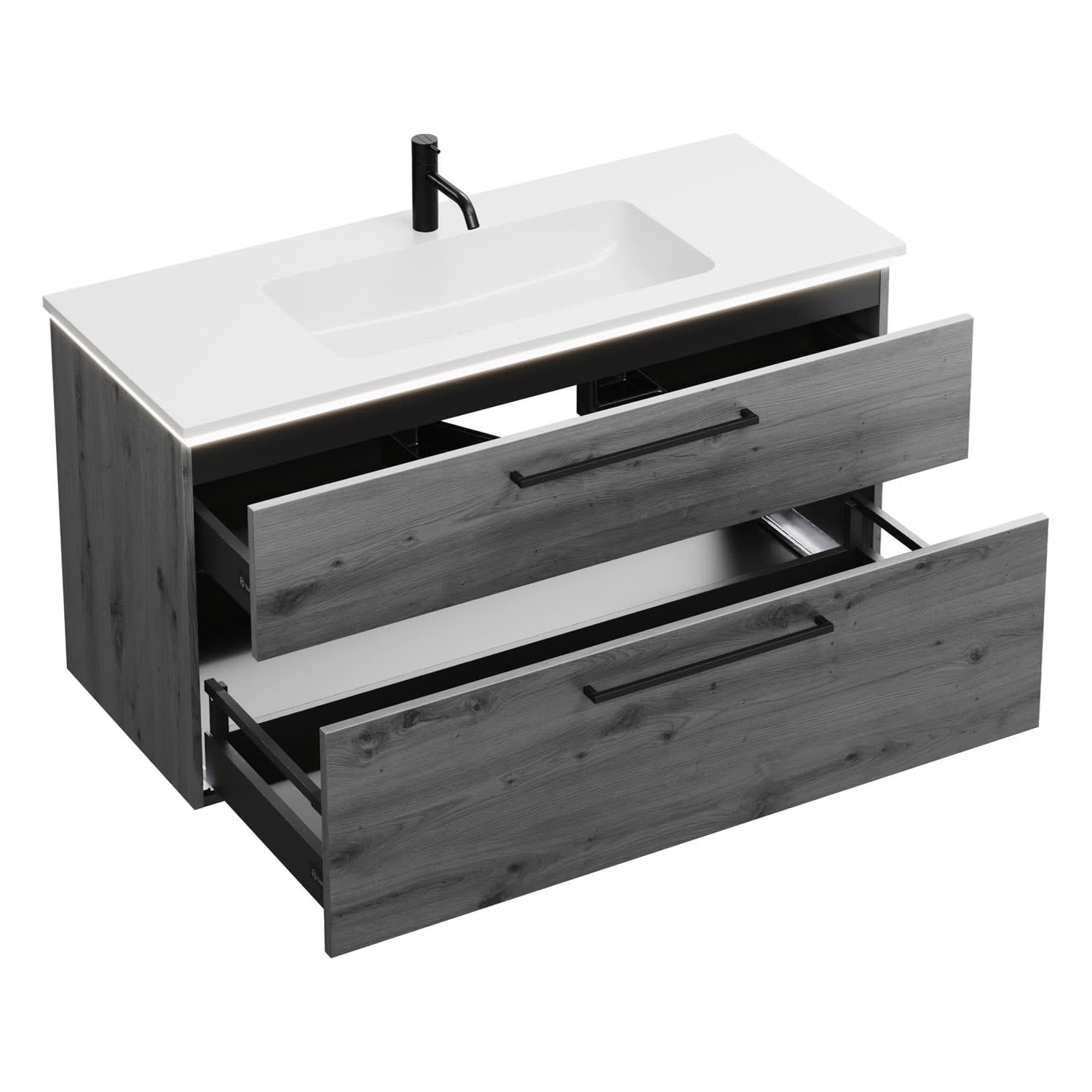 burgbad Eqio Waschtischkombination mit Mineralguss-Waschtisch und LED-Beleuchtung, 122 cm, mit Stangengriff G0234